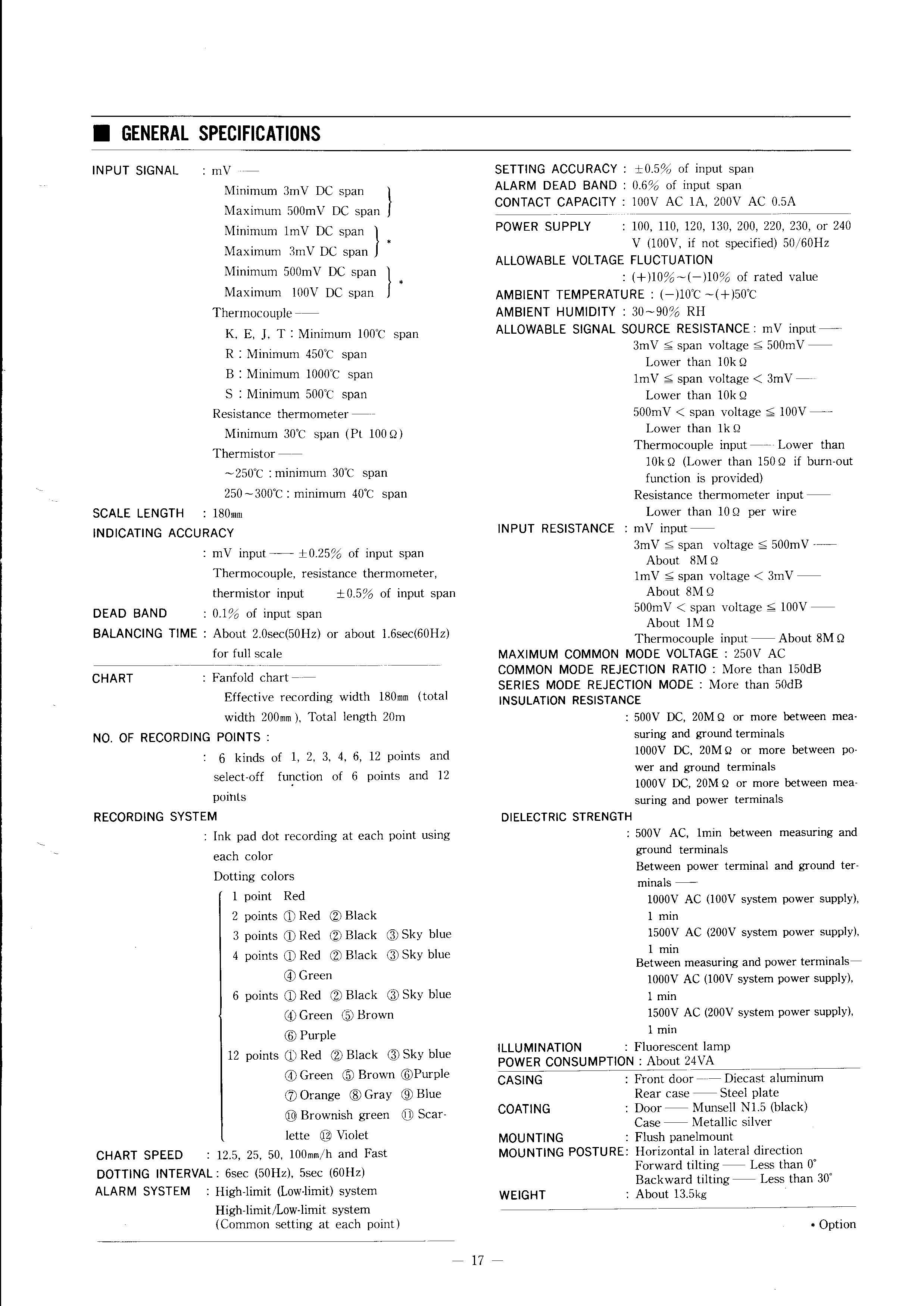The EH series dotting type recorders/recording alarms cover dotting type recorders having 1 to 12 recording points and dotting type recording alarms having alarm mechanisms set to these recording points commonly.