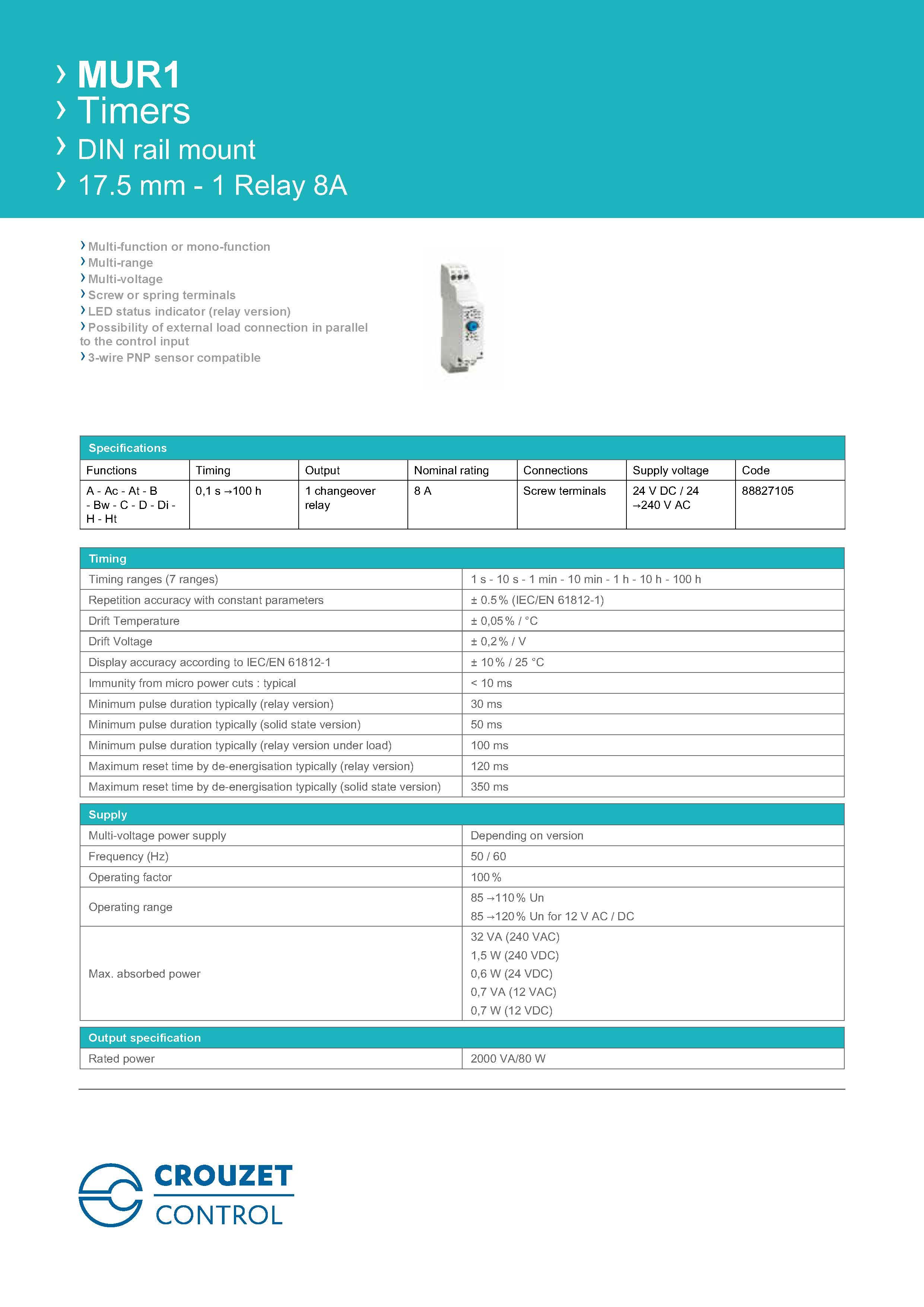 CROUZET TIMER MUR1 88827105