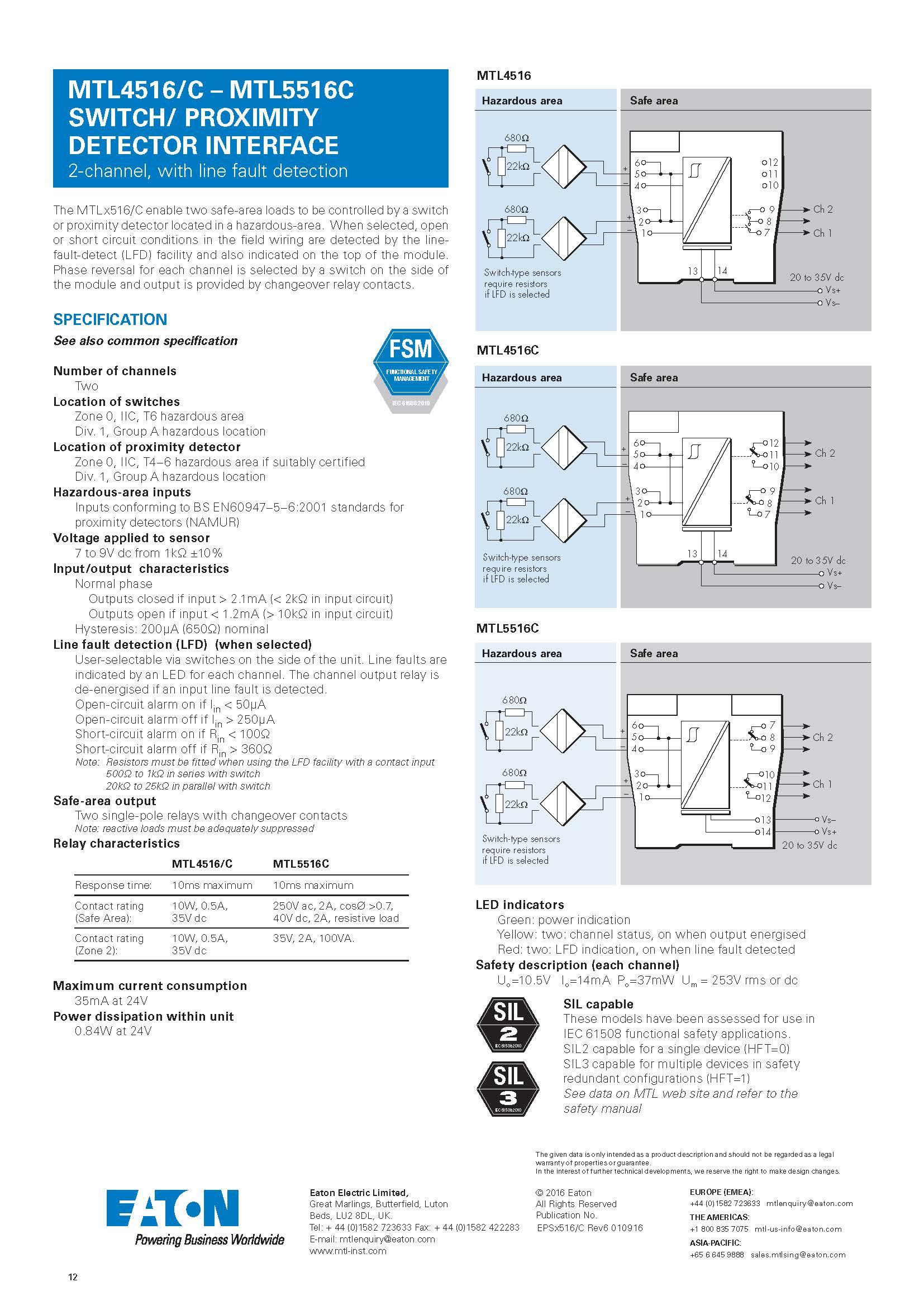 The MTLx516/C enable two safe-area loads to be controlled by a switch or proximity detector located in a hazardous-area.