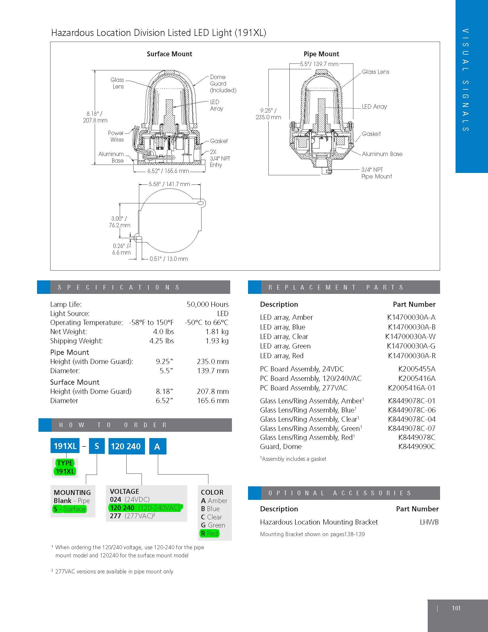 • Five lamp/lens colors: Amber, Blue, Clear, Green and Red