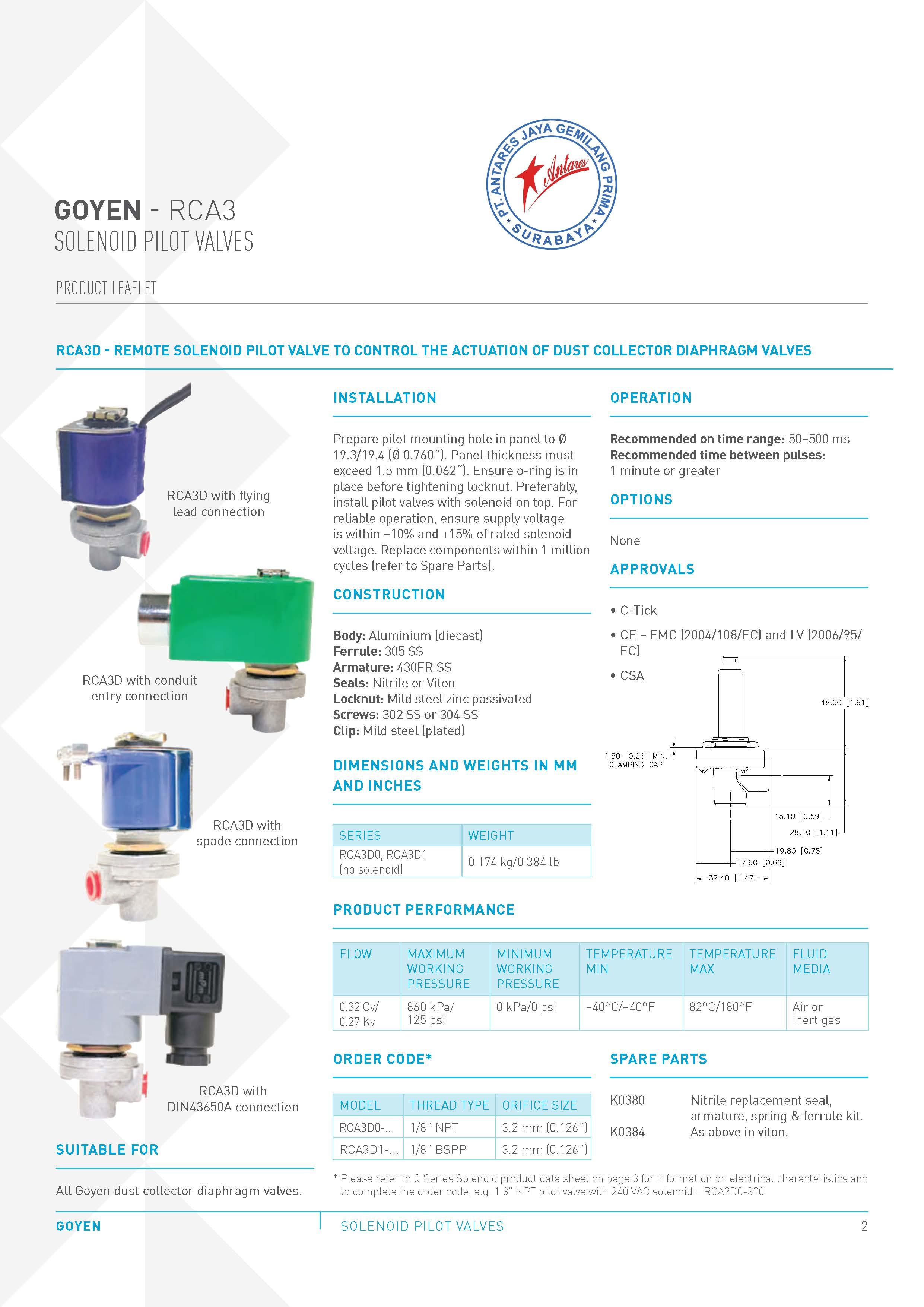 • Suitable for all Goyen dust collector diaphragm valves