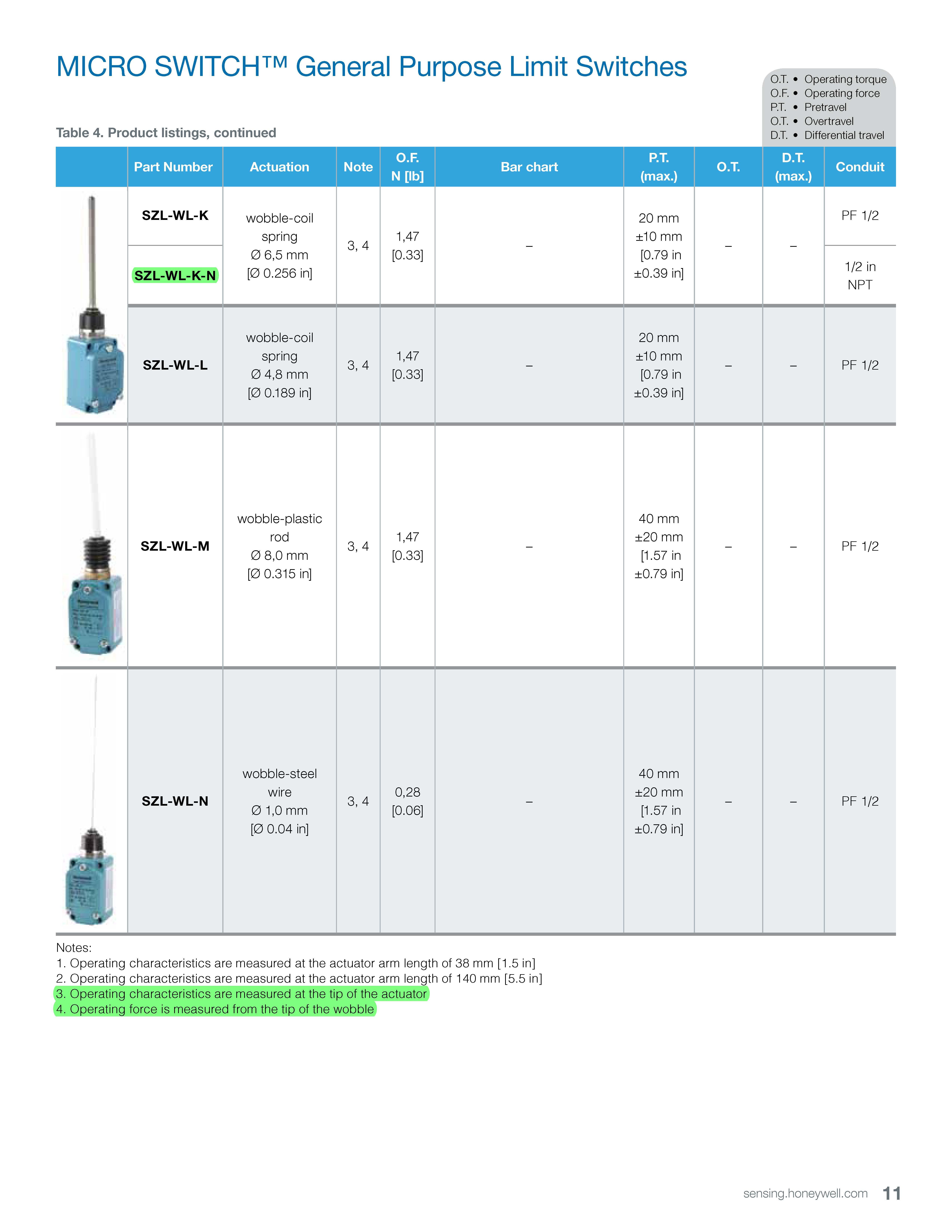 HONEYWELL LIMIT SWITCH SZL-WL-K-N