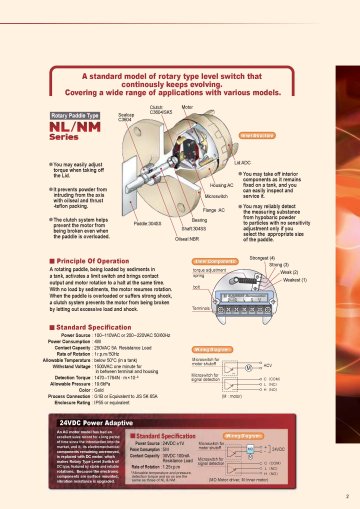 A rotating paddle, being loaded by sediments in a tank, activates a limit switch and brings contact output and motor rotation to a halt at the same time.