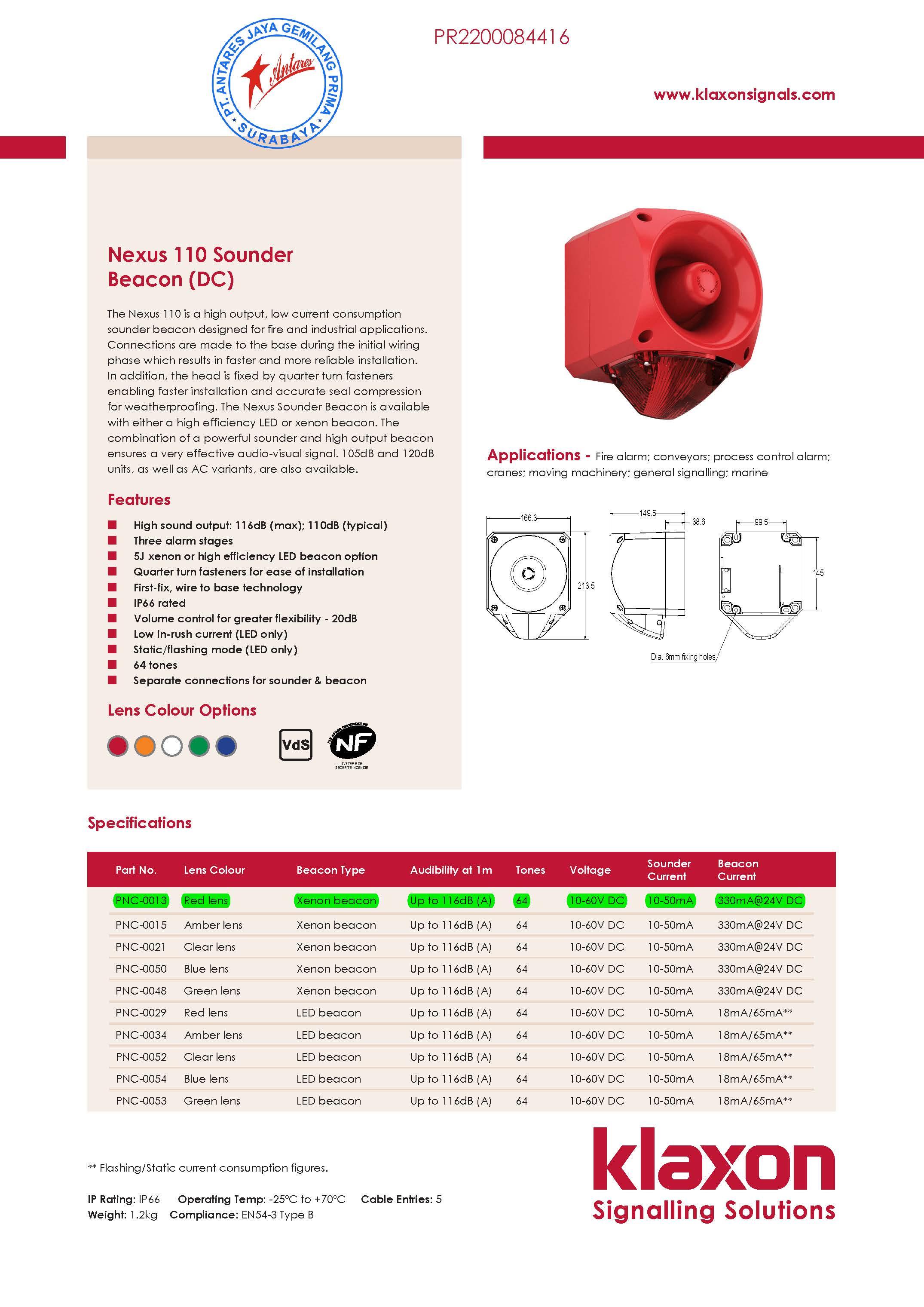 • High sound output: 116dB (max); 110dB (typical)
