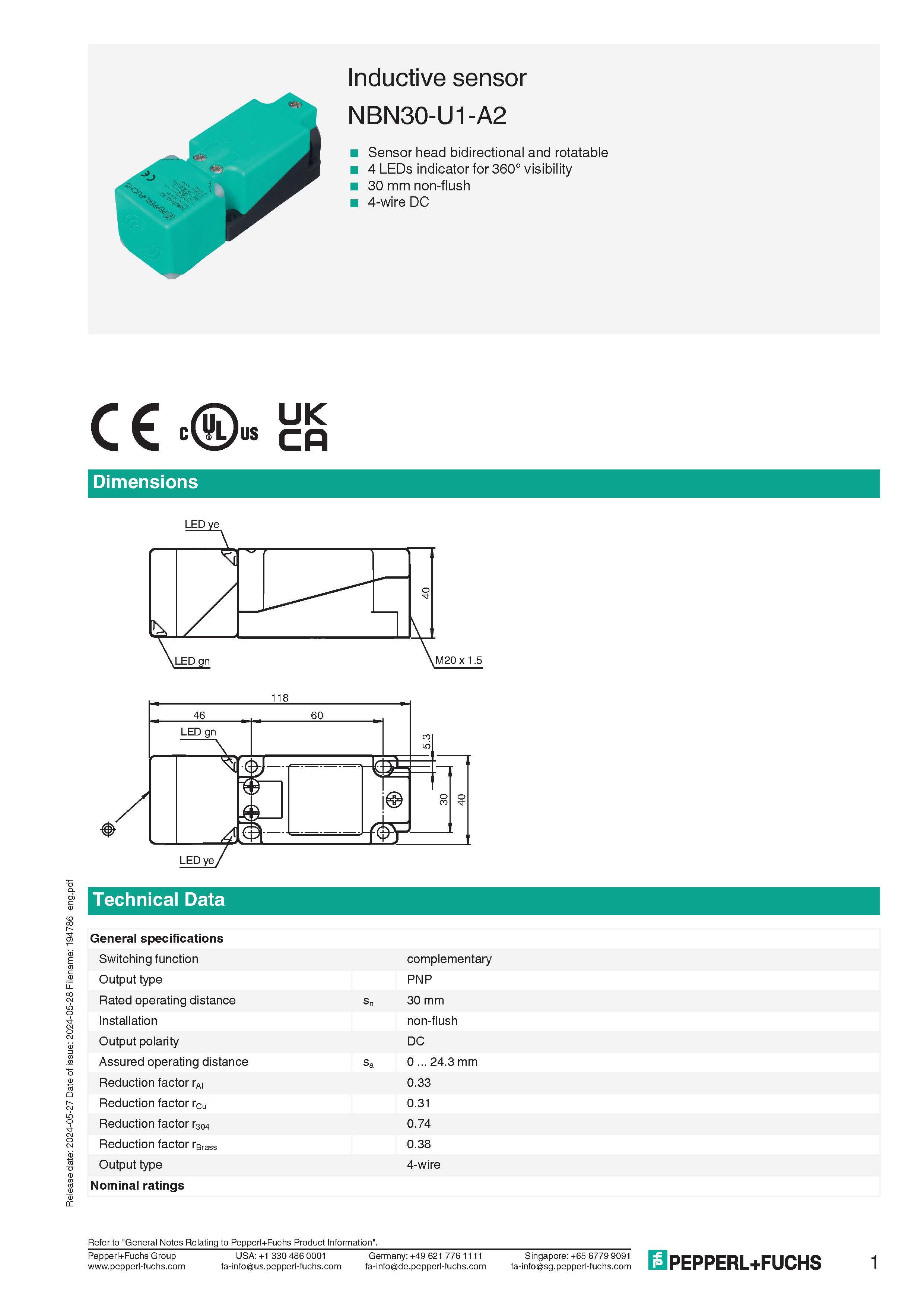 • Sensor head bidirectional and rotatable