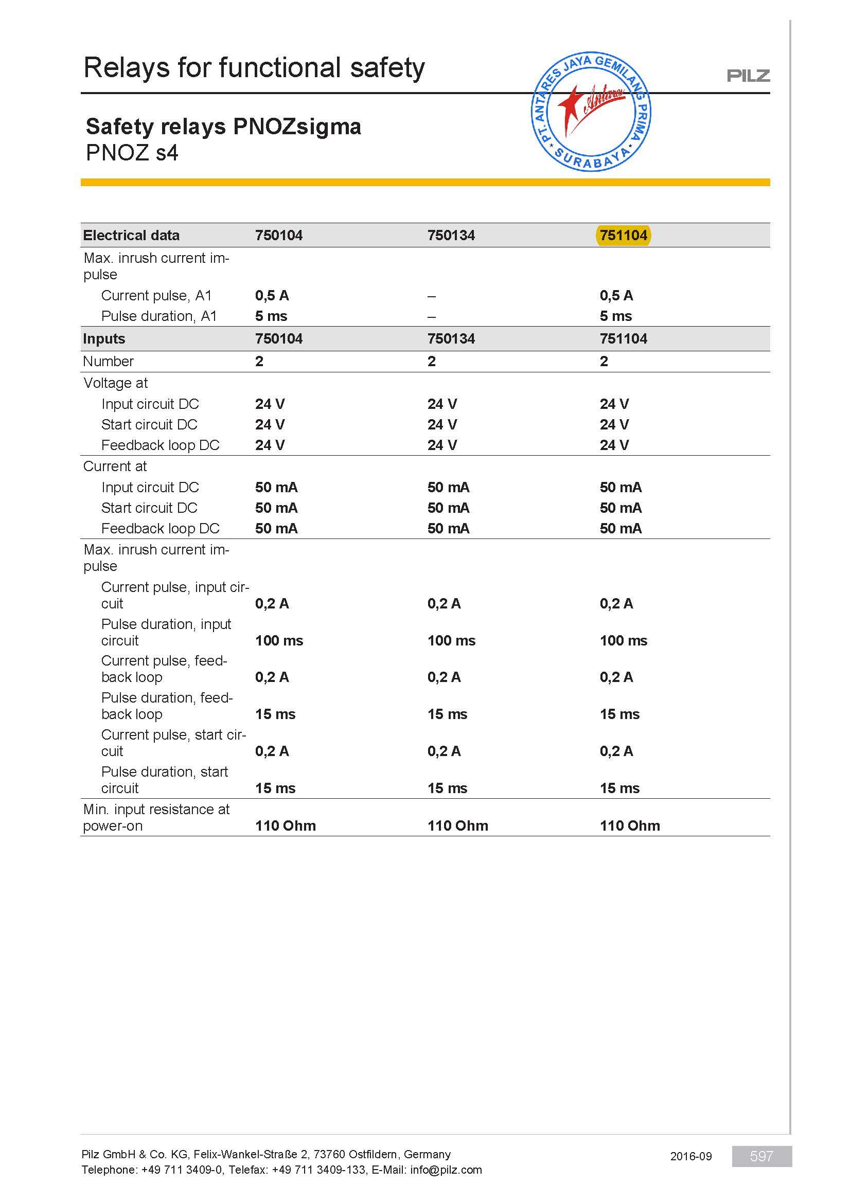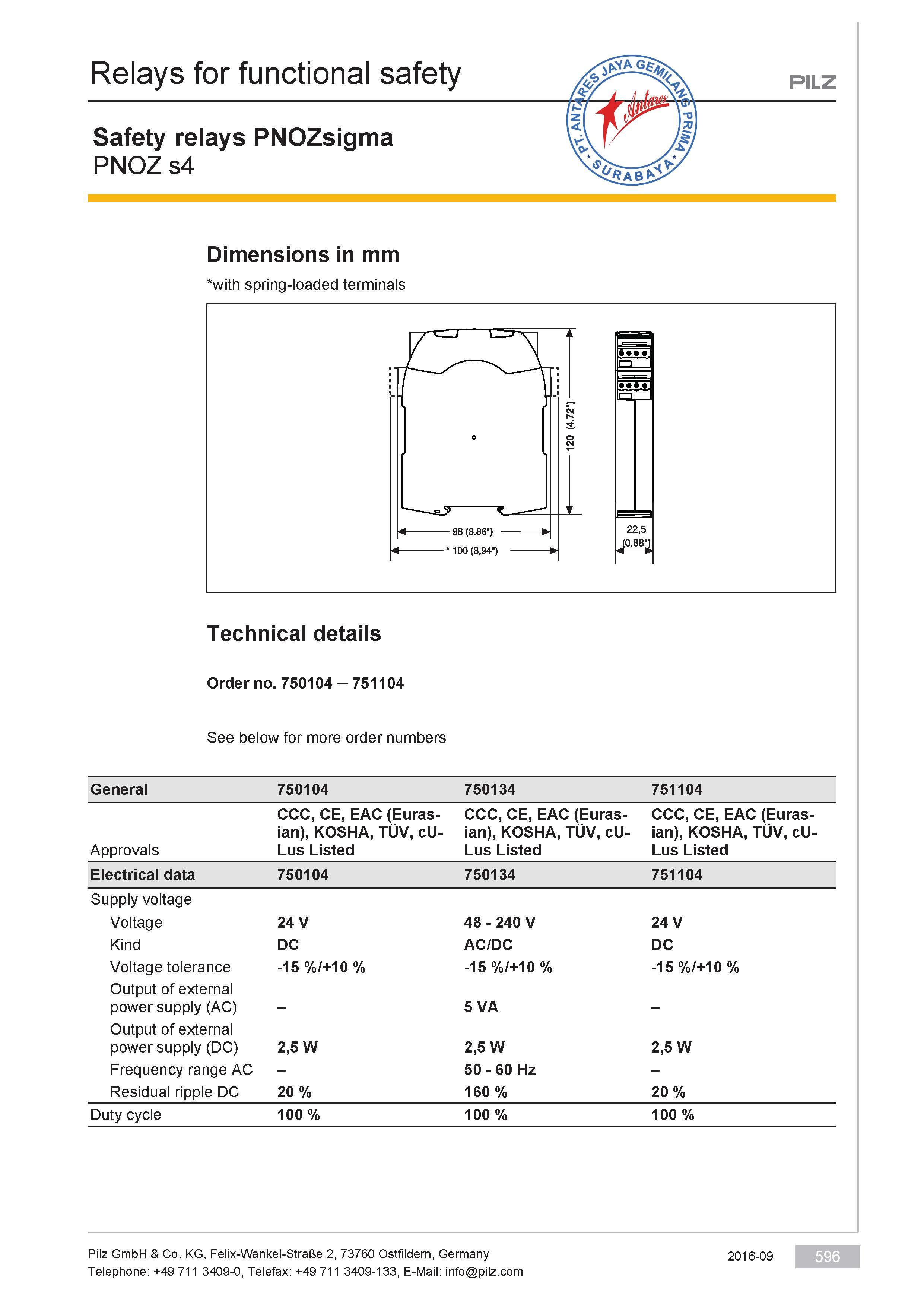 PILZ SAFETY RELAY PNOZ s4 C 751104