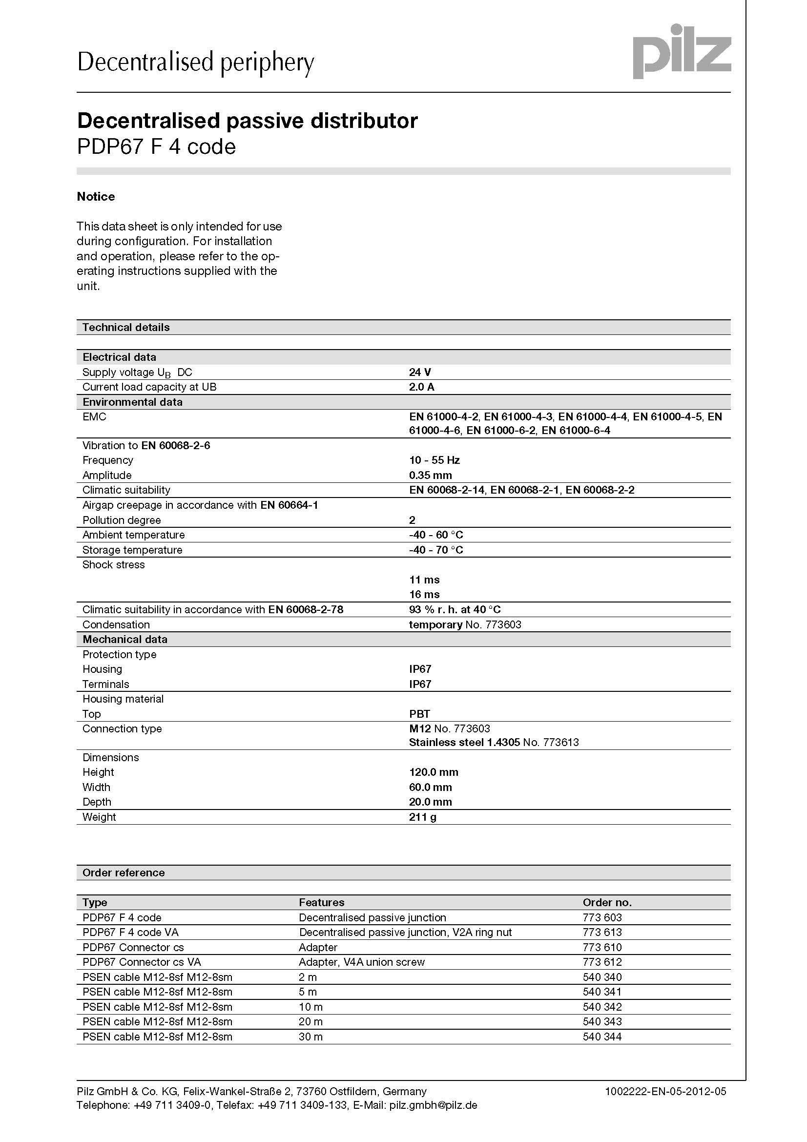 PILZ SENSOR PDP67 F 4