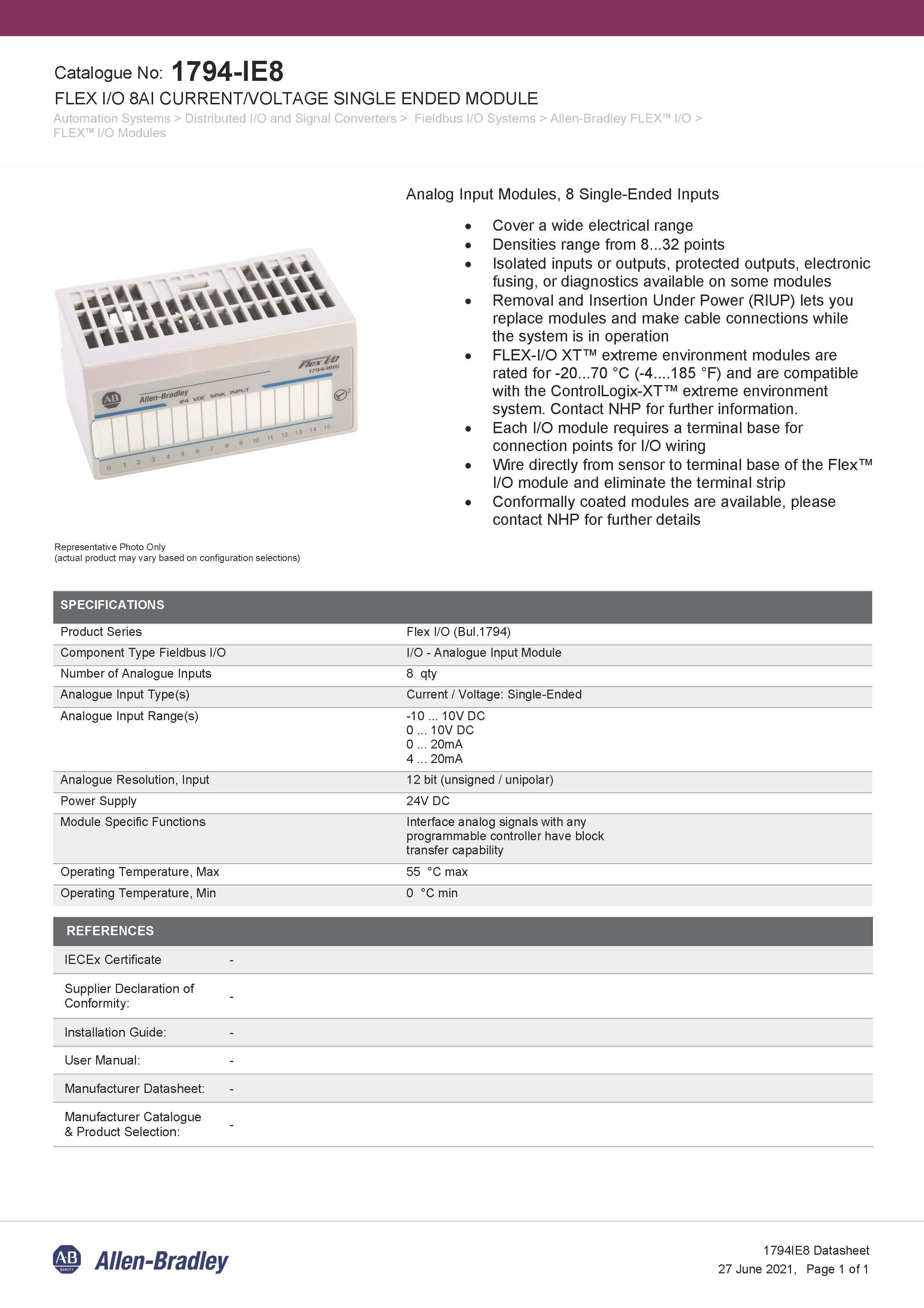 ● FLEX-I/O XT™ extreme environment modules are rated for -20...70 °C (-4....185 °F) and are compatible with the ControlLogix-XT™ extreme environment system.