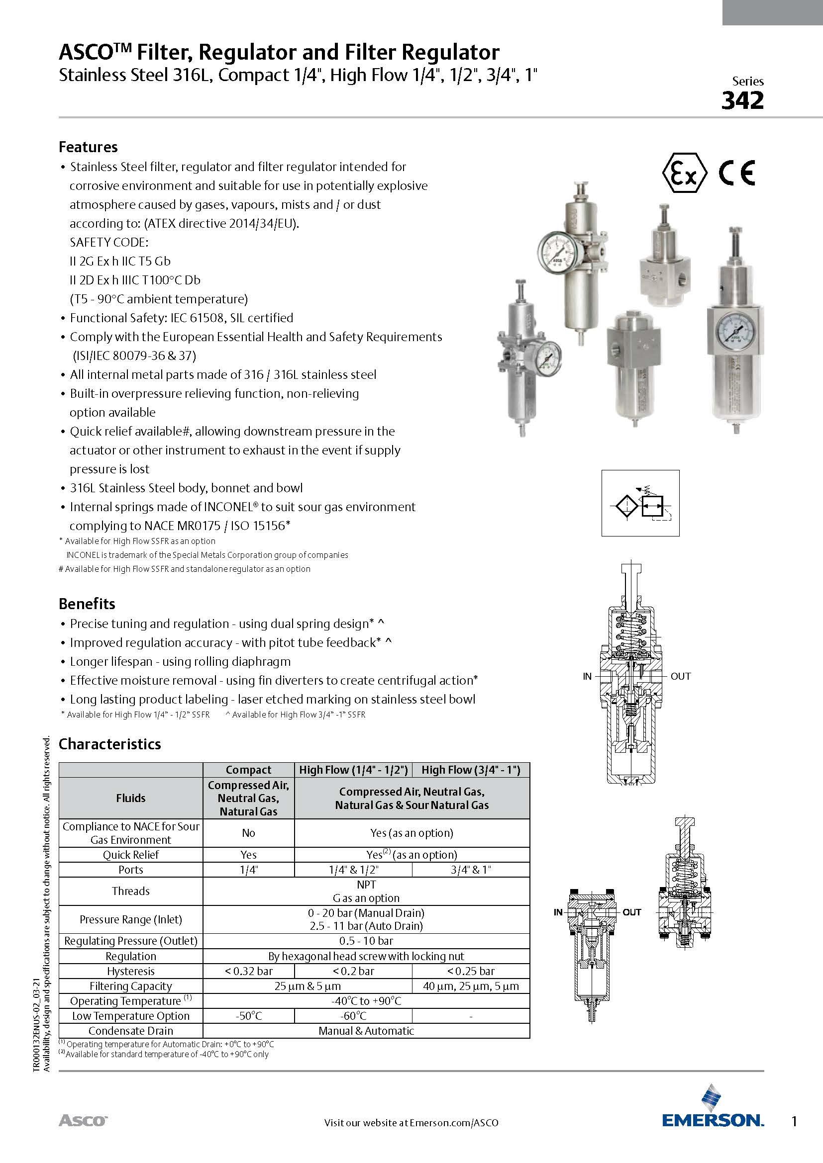 • Stainless Steel filter, regulator and filter regulator intended for corrosive environment and suitable for use in potentially explosive atmosphere caused by gases, vapours, mists and / or dust according to: (ATEX directive 2014/34/EU).