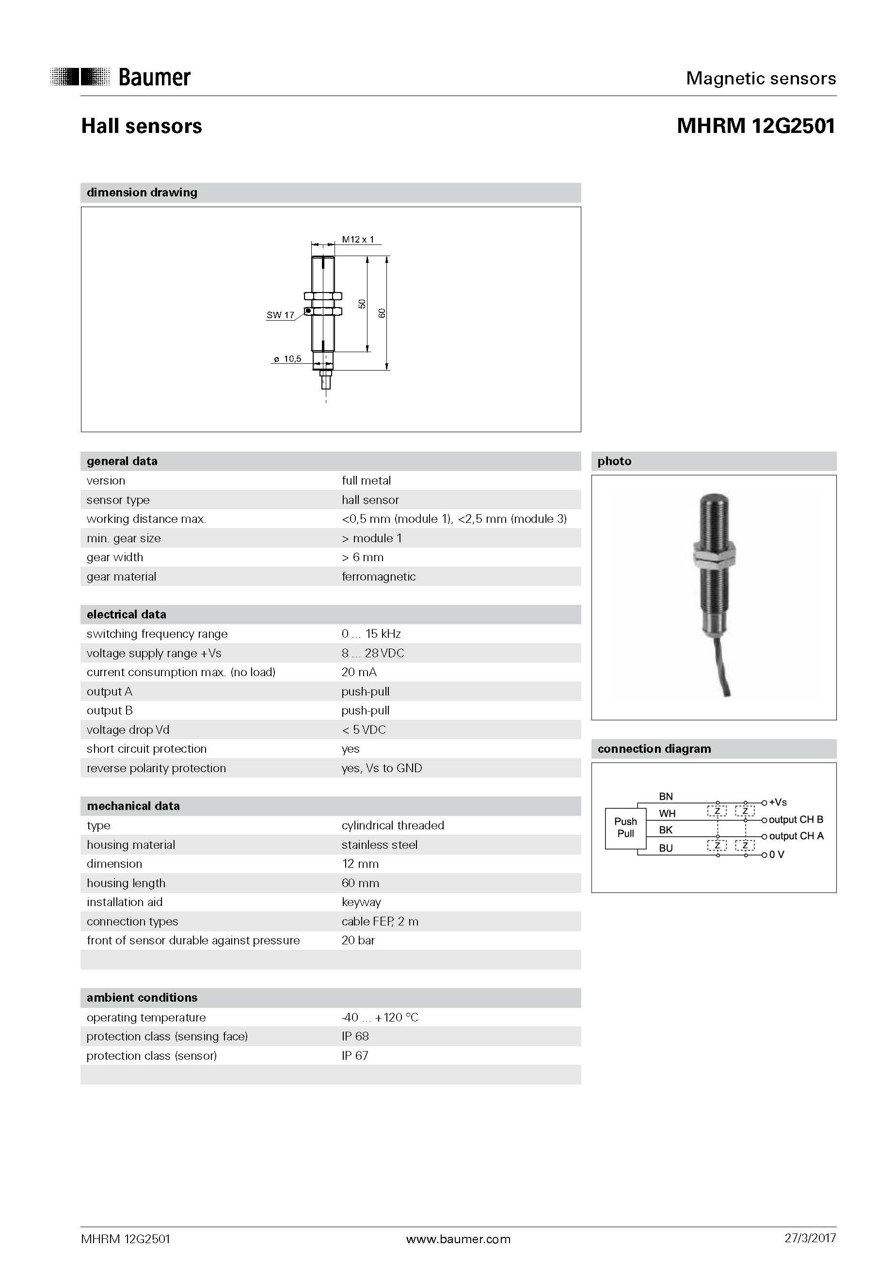 BAUMER MAGNETIC SENSOR MHRM 12G2501