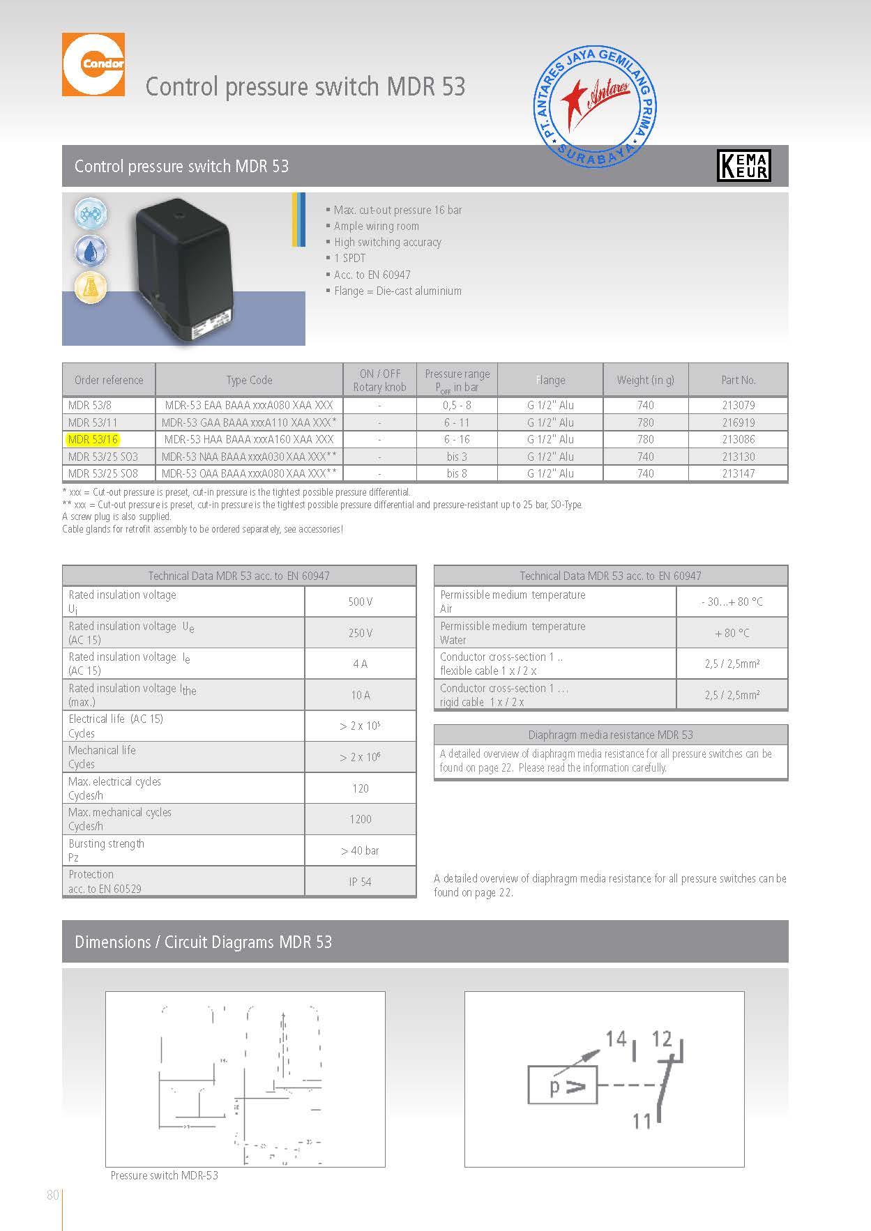 • Max. cut-out pressure 16 bar