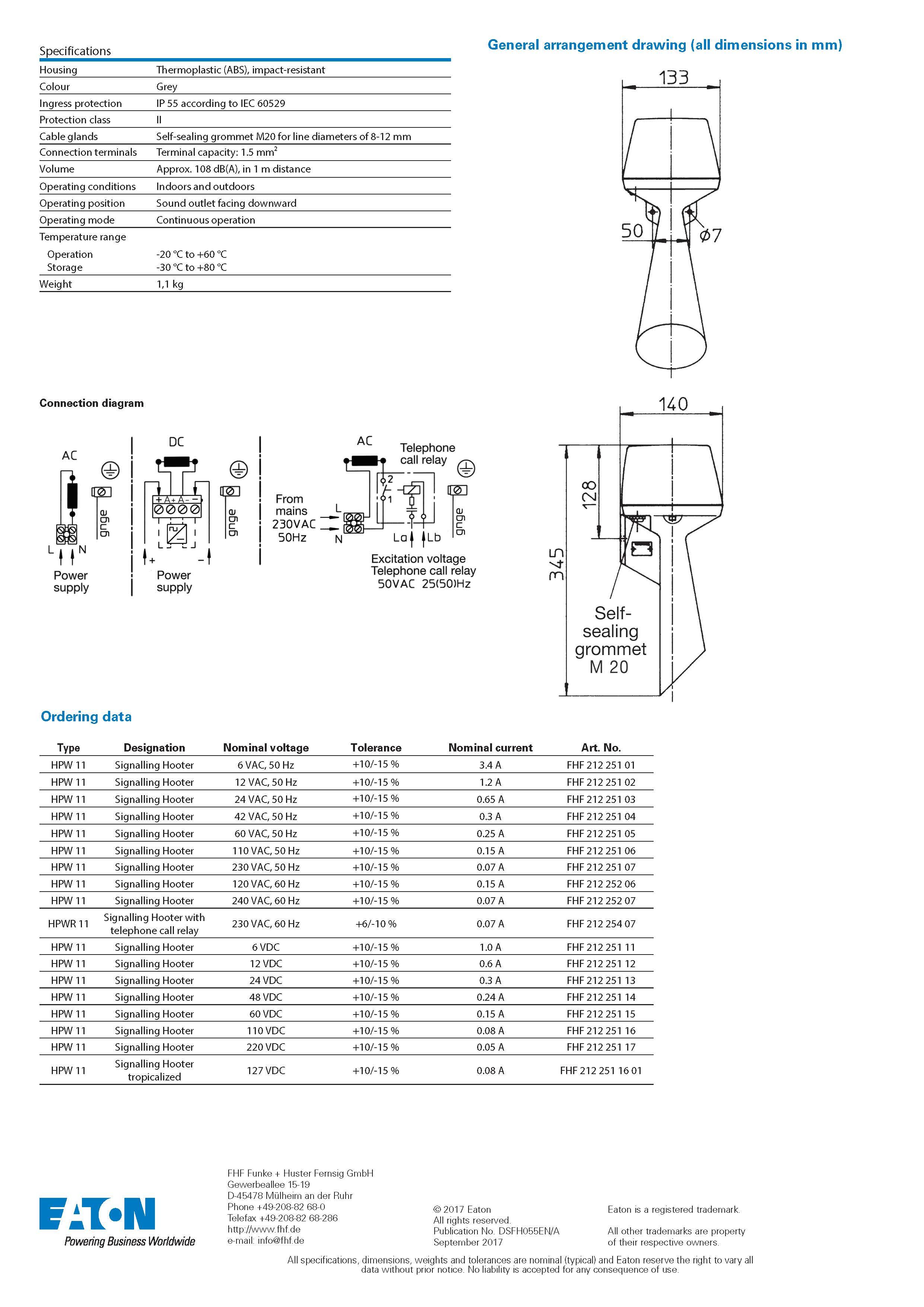 • The signalling hooter housing is made of impact-resistant thermoplastic