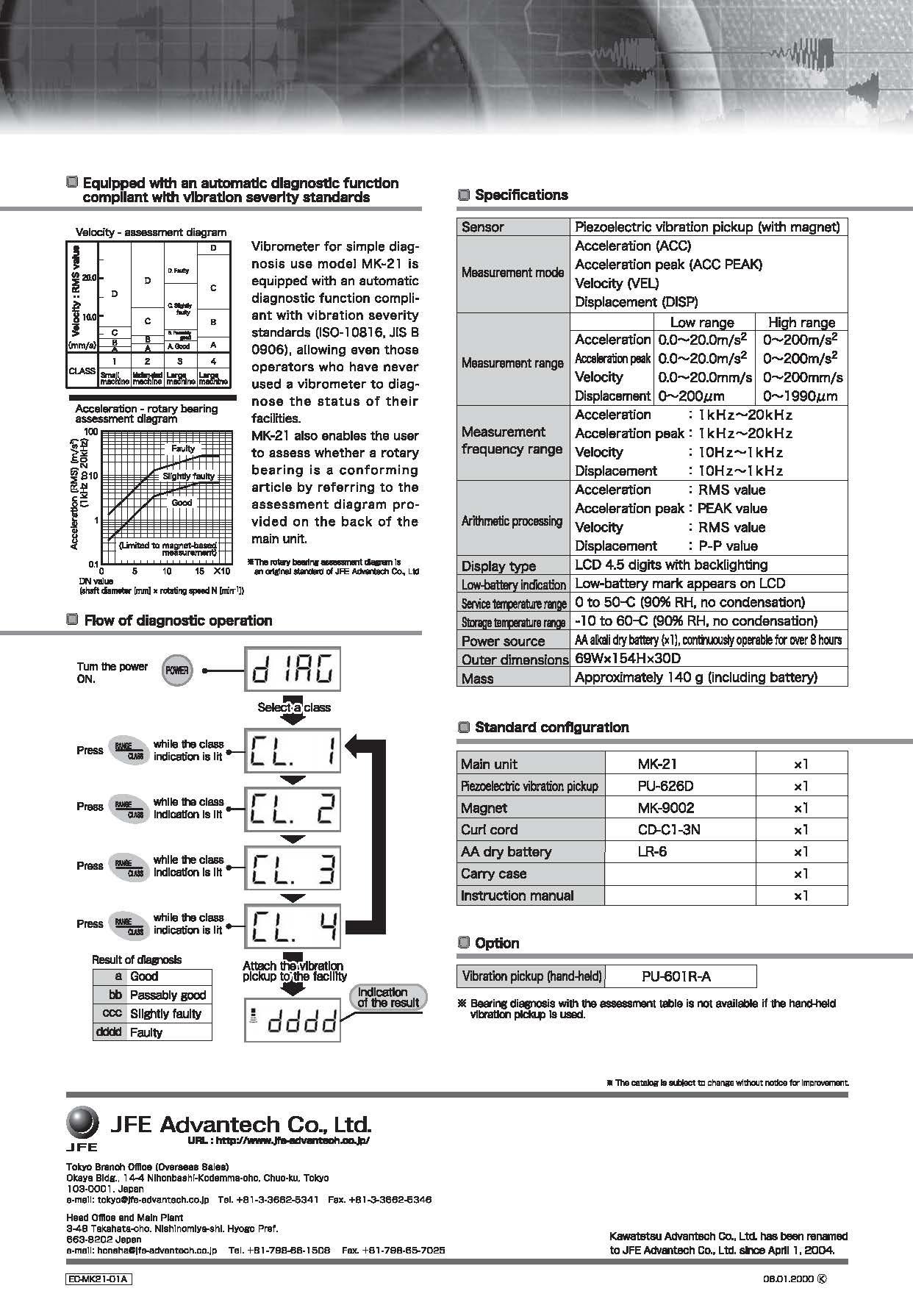 • Also allows easy diagnosis of bearings with assessment criteria indicated on the back of the main unit