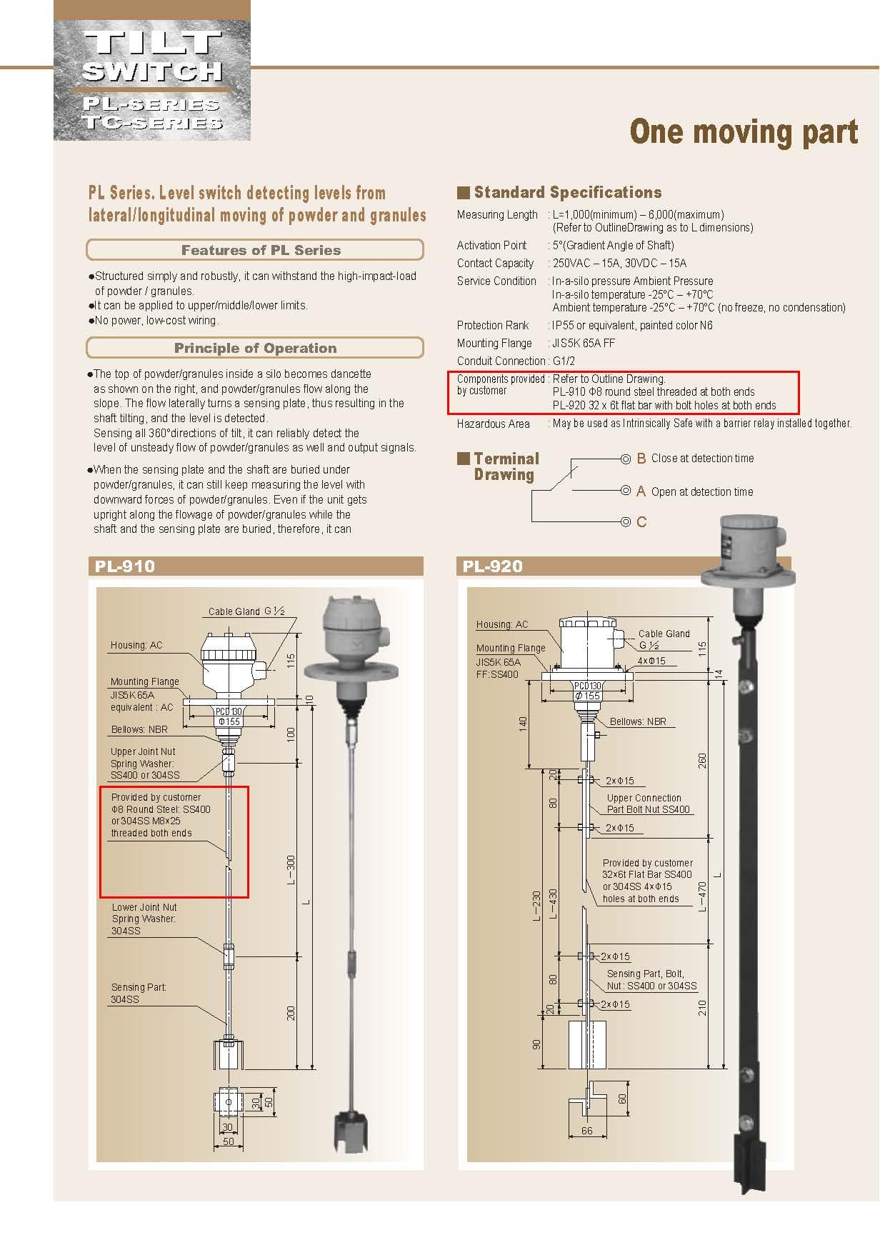 • PL Level Switch can be used as Intrinsically Safe Explosion-proof Type if put together with a barrier relay
