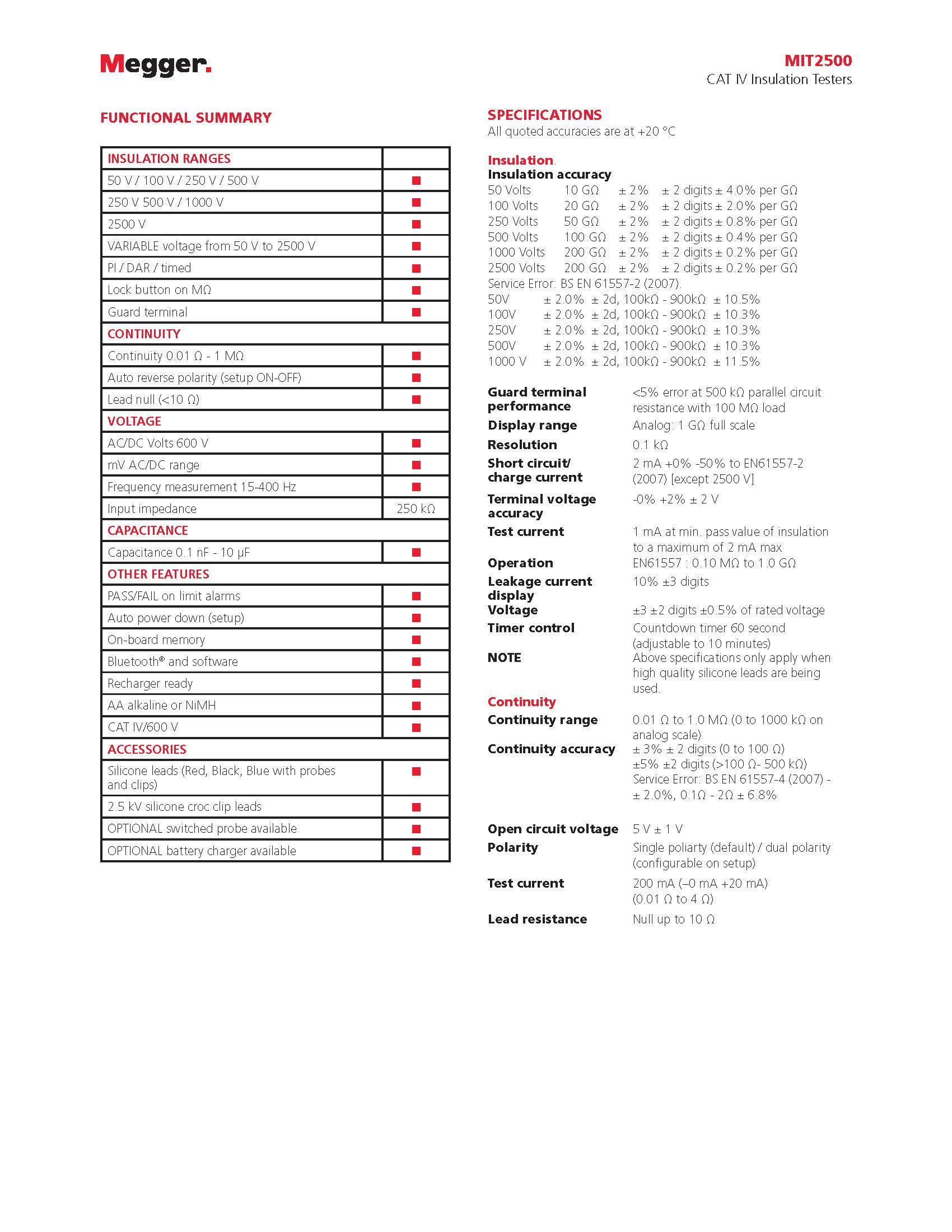 • Insulation testing up to 2.5 kV (New) and 200 GΩ range in a handheld instrument