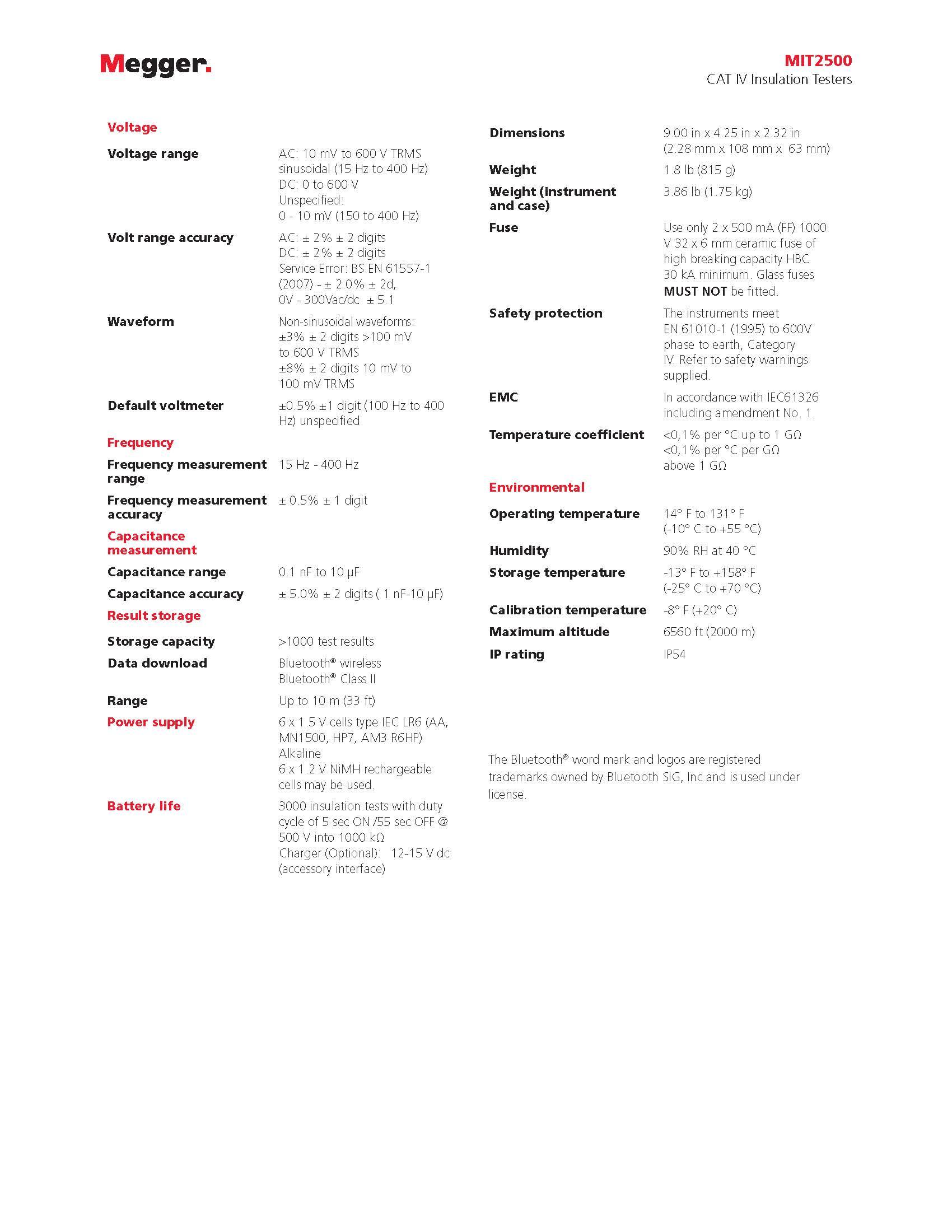 • Adjustable insulation test voltage from 50 V to 2500 V