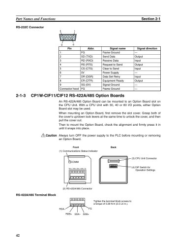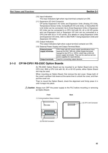 An RS-232C Option Board can be mounted to an Option Board slot on the CPU Unit. With a CPU Unit with 30, 40 or 60 I/O points, either Option Board slot may be used.