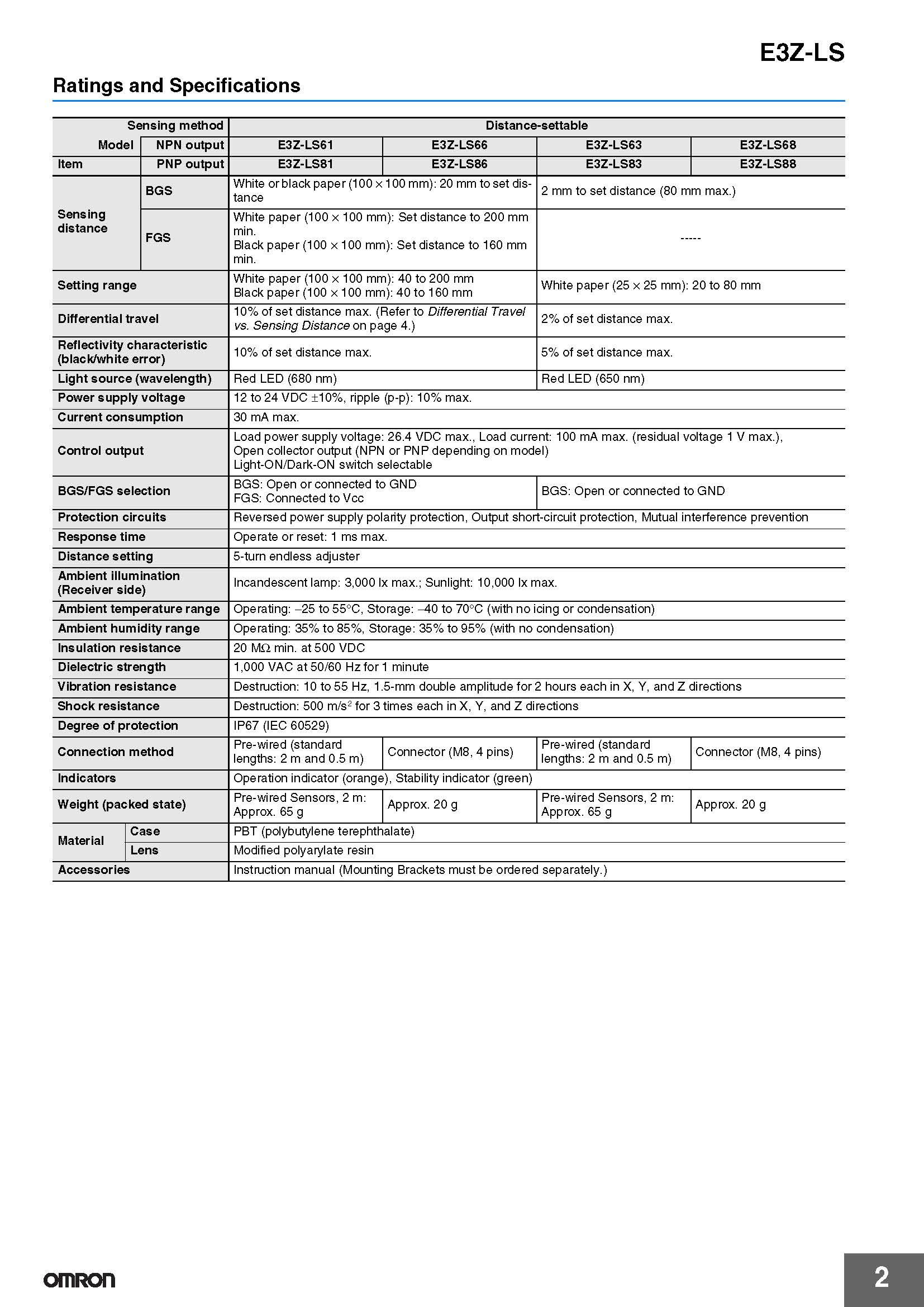 • Simple positioning settings using a clear LED spot. (E3Z-LS 3/LS 8)