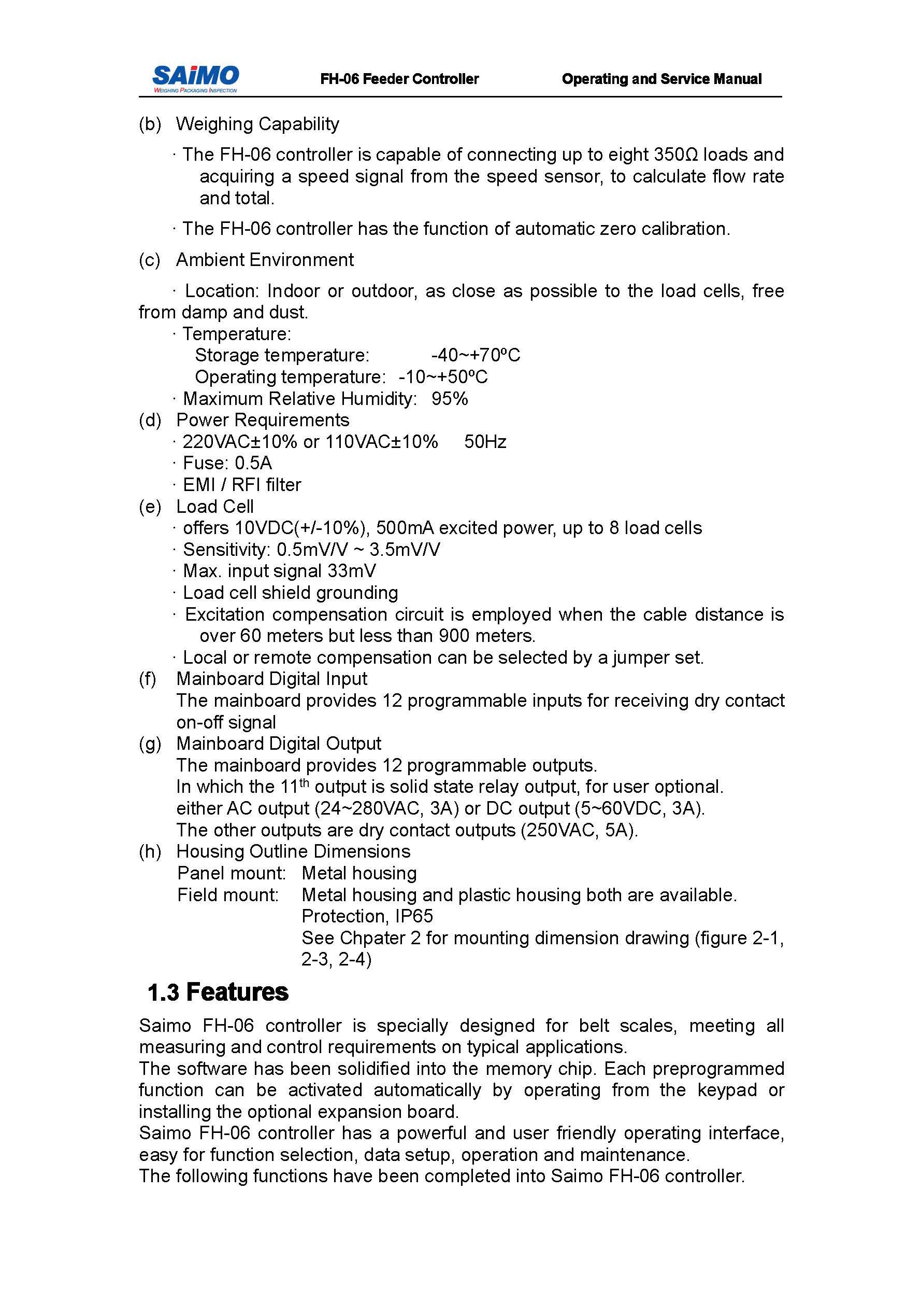 • By processing the weight signal from the load cell and the speed signals from the speed sensor, It calculates and displays flow rate and total of the material fed