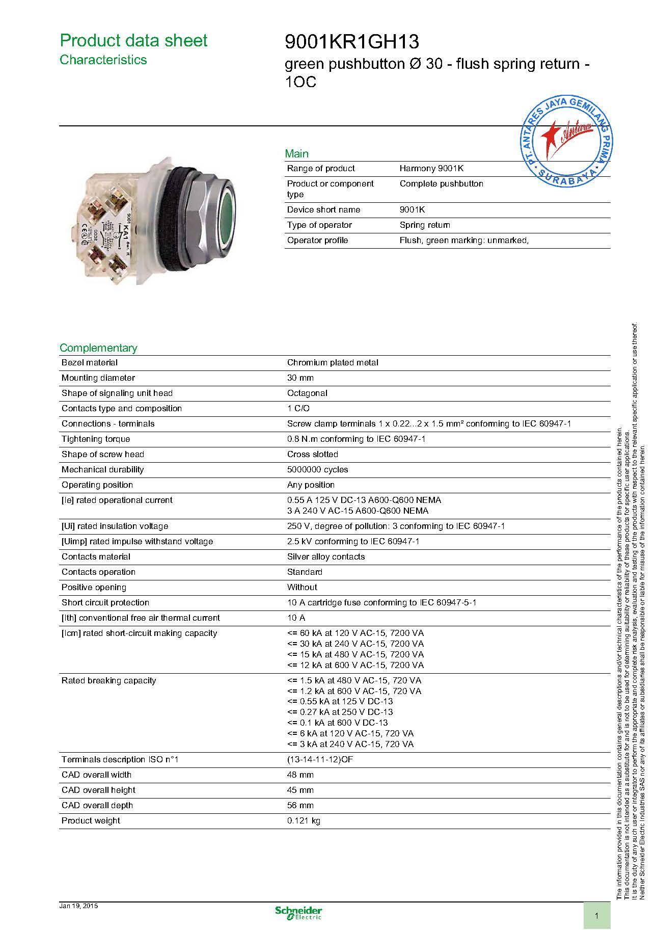SCHNEIDER PUSH BUTTON 9001KR1GH13