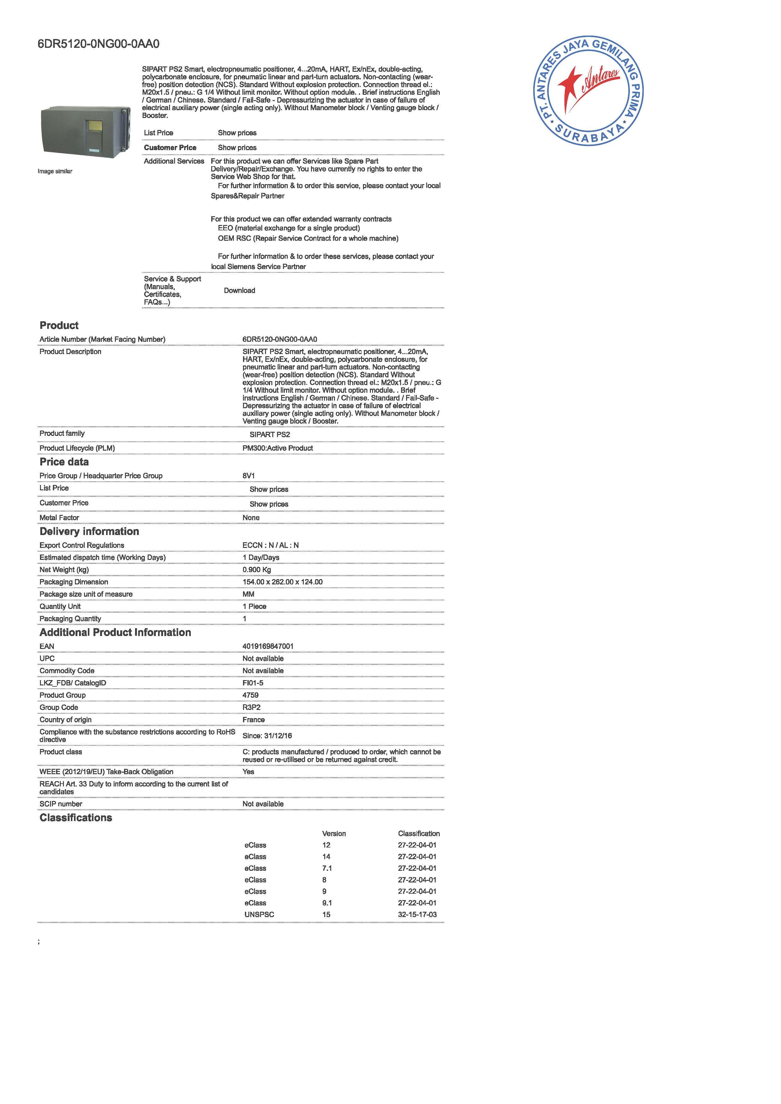 SIEMENS ELECTRO PNEUMATIC POSITIONER 6DR5120-0NG00-0AA0