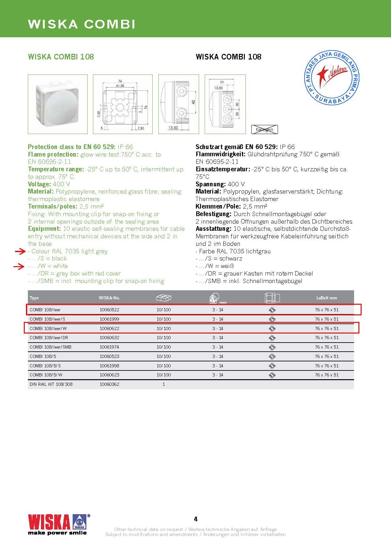 Material: Polypropylene, reinforced glass fibre; sealing: thermoplastic elastomere