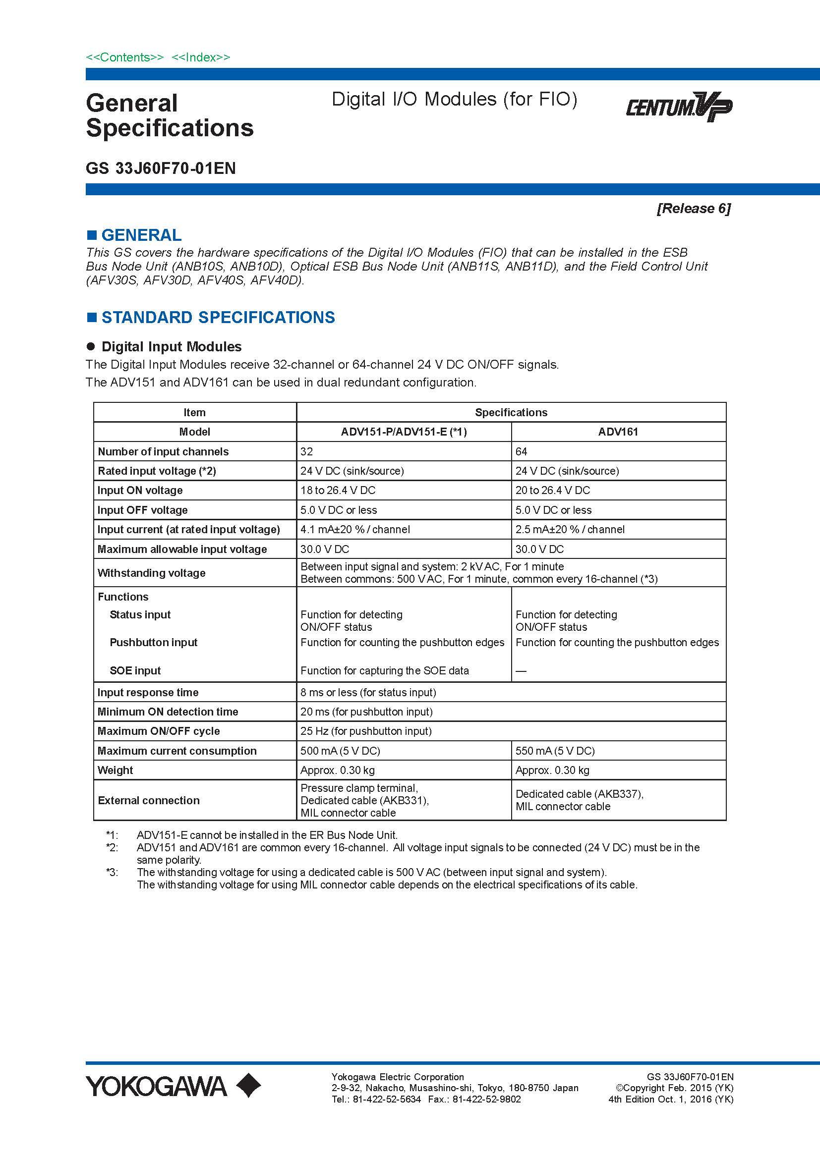 YOKOGAWA DIGITAL INPUT MODULE ADV151-P63/DA500
