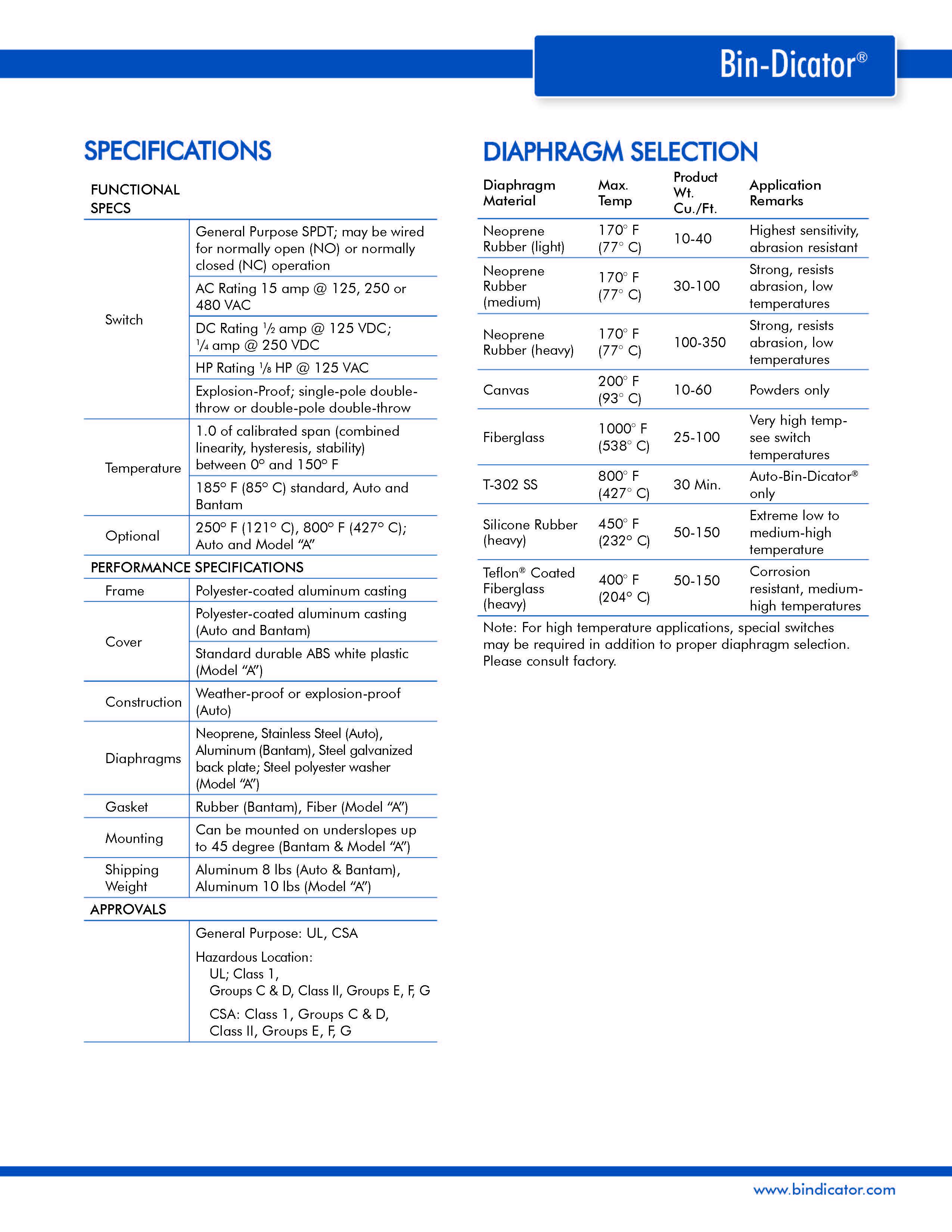 • Can be mounted outside the bin for lower installation costs.