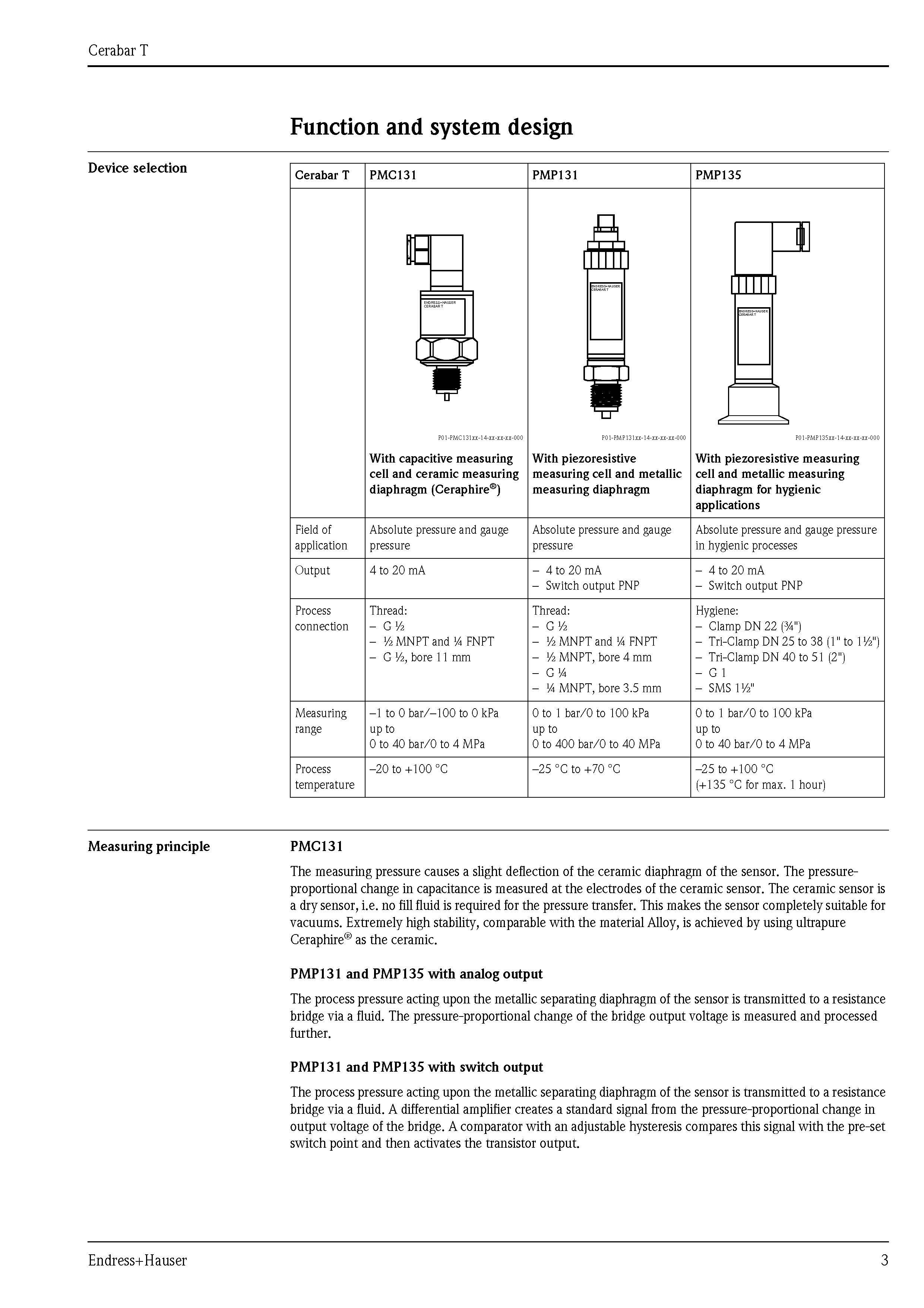 • Ceraphire® ceramic sensor: corrosion-proof, abrasionproof and extremely overload-resistant.