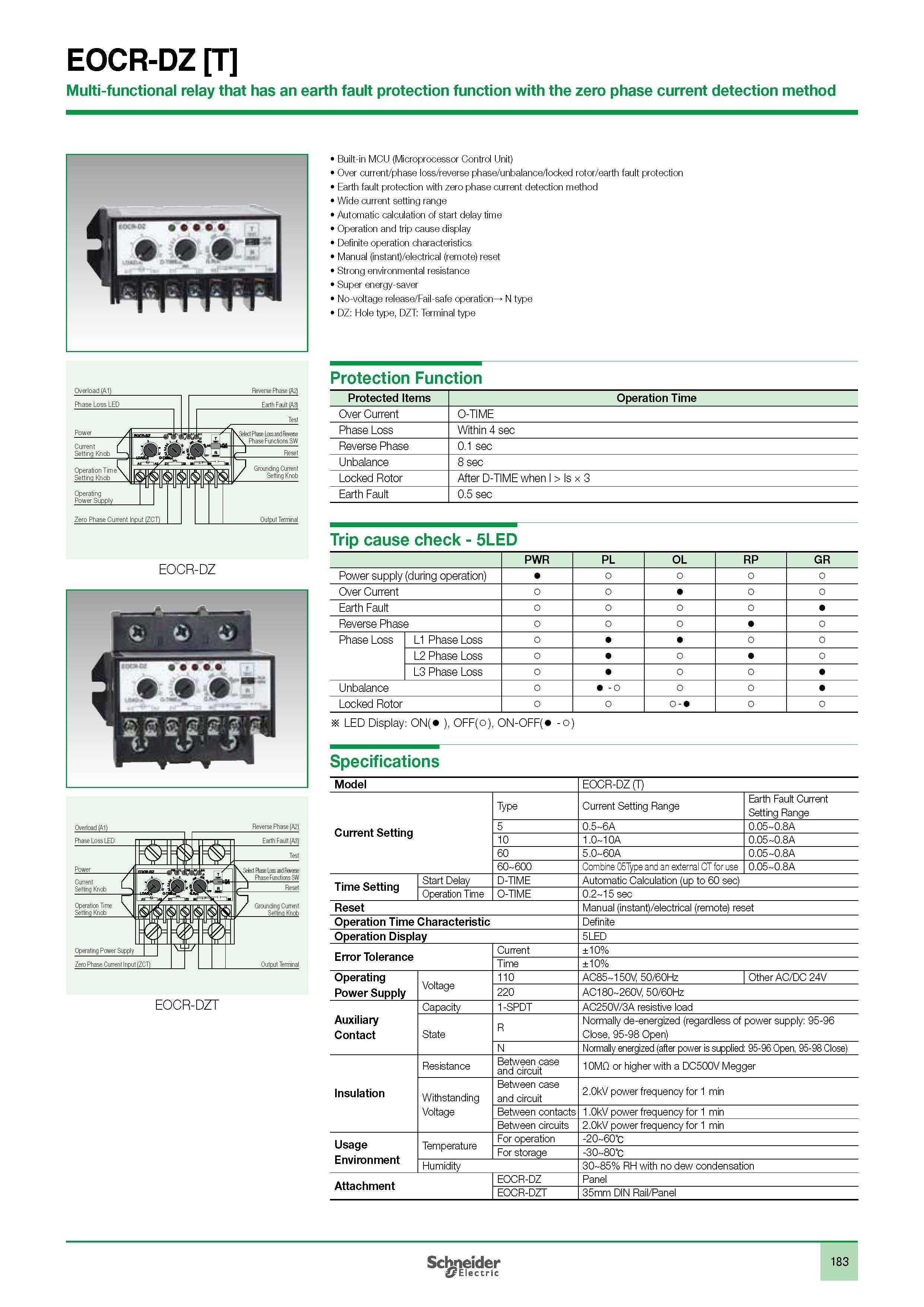 • Over current/phase loss/reverse phase/unbalance/locked rotor/earth fault protection