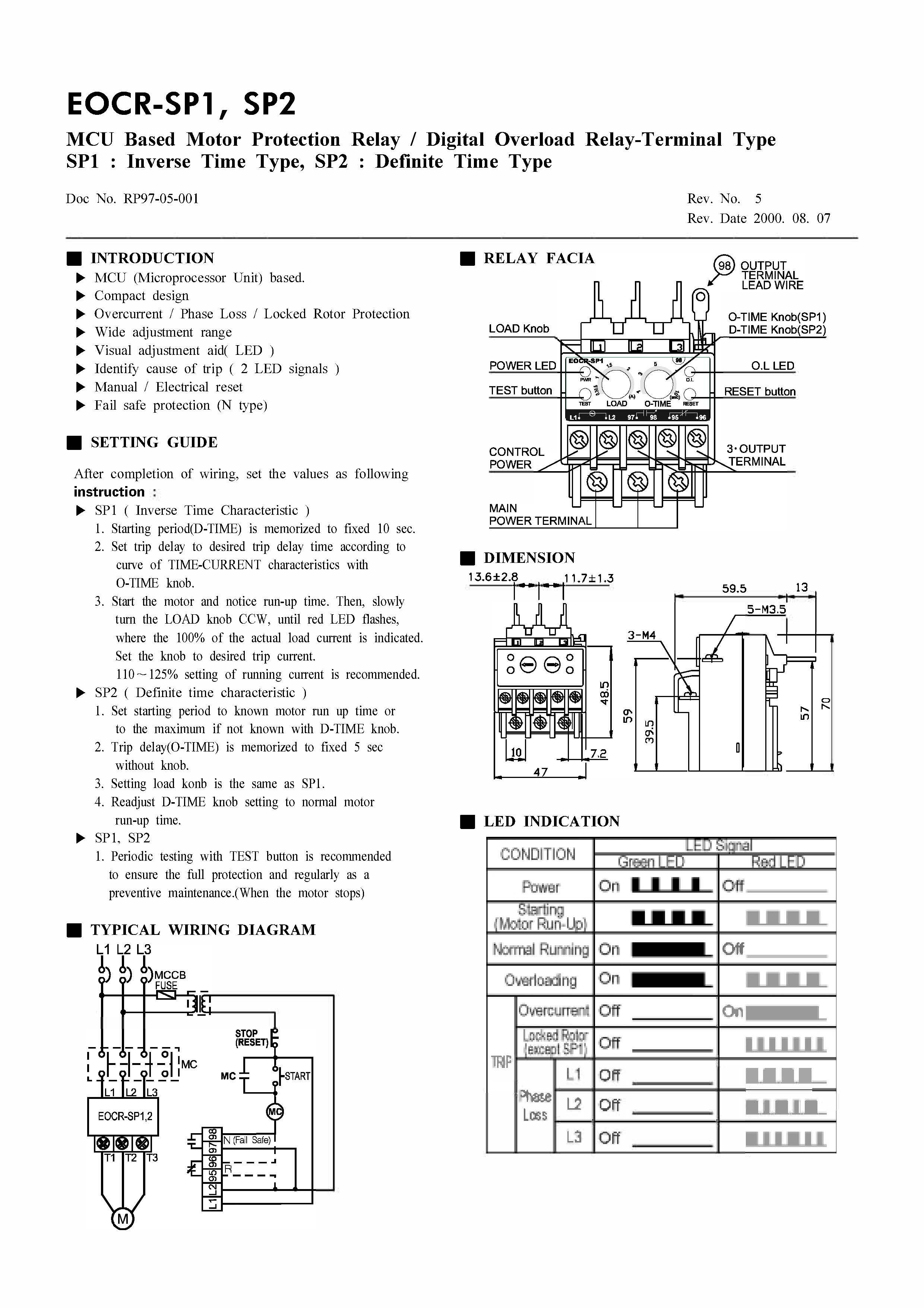 • Identify cause of trip (2 LED signals)