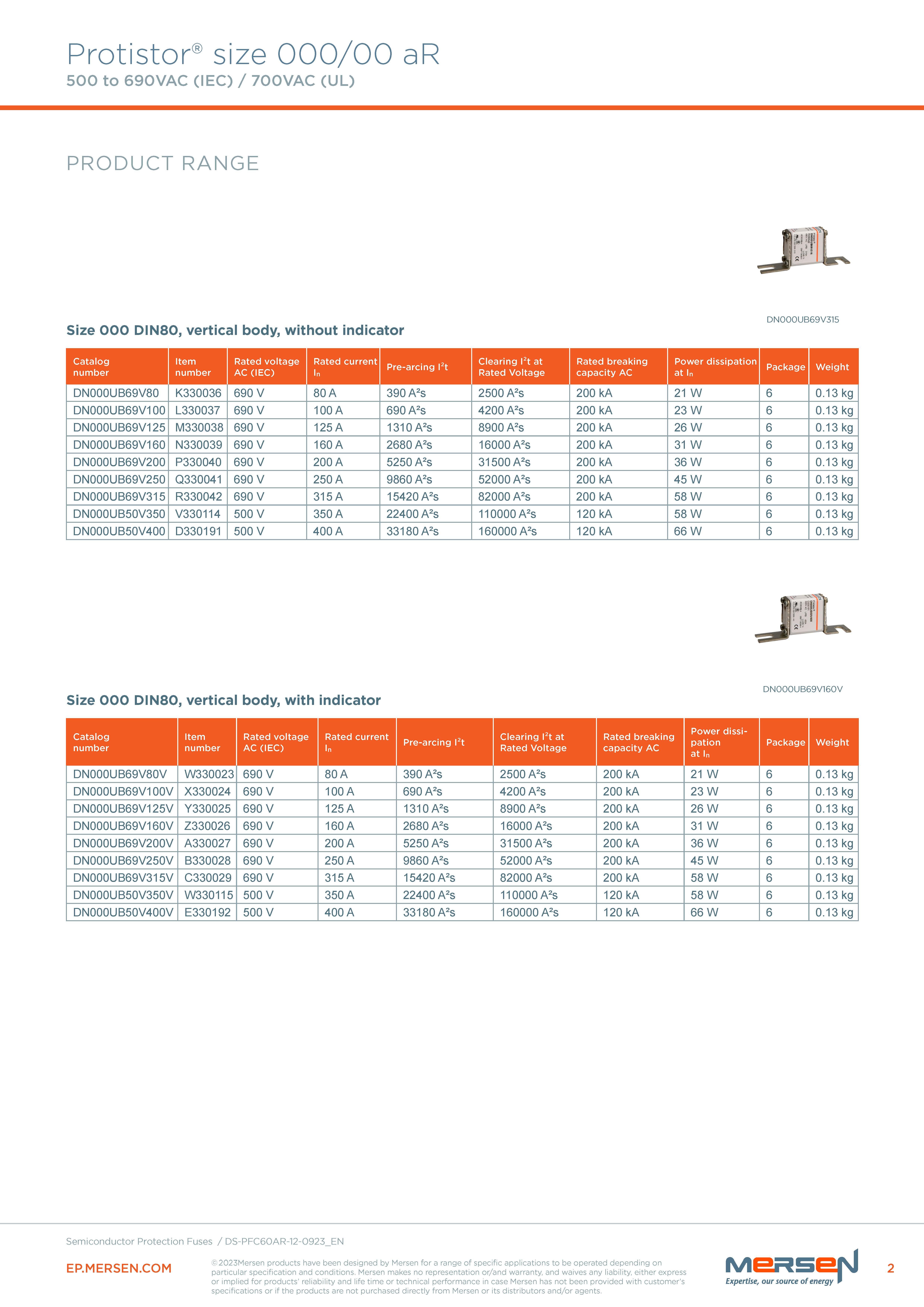 • aR Class according to IEC 60269-4 and VDE 636-23