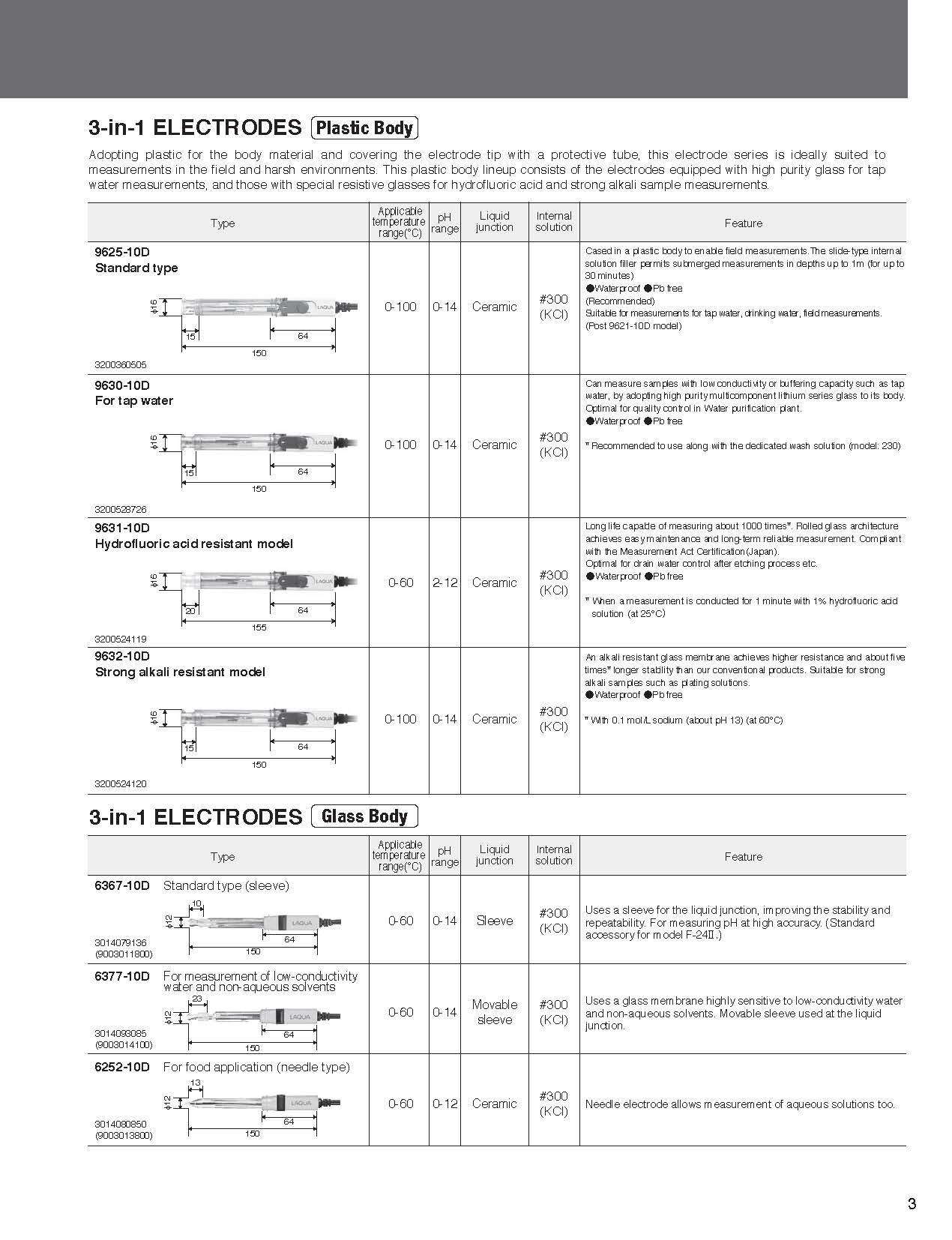 ● Cased in a plastic body to enable field measurements.The slide-type internal solution filler permits submerged measurements in depths up to 1m (for up to 30 minutes)