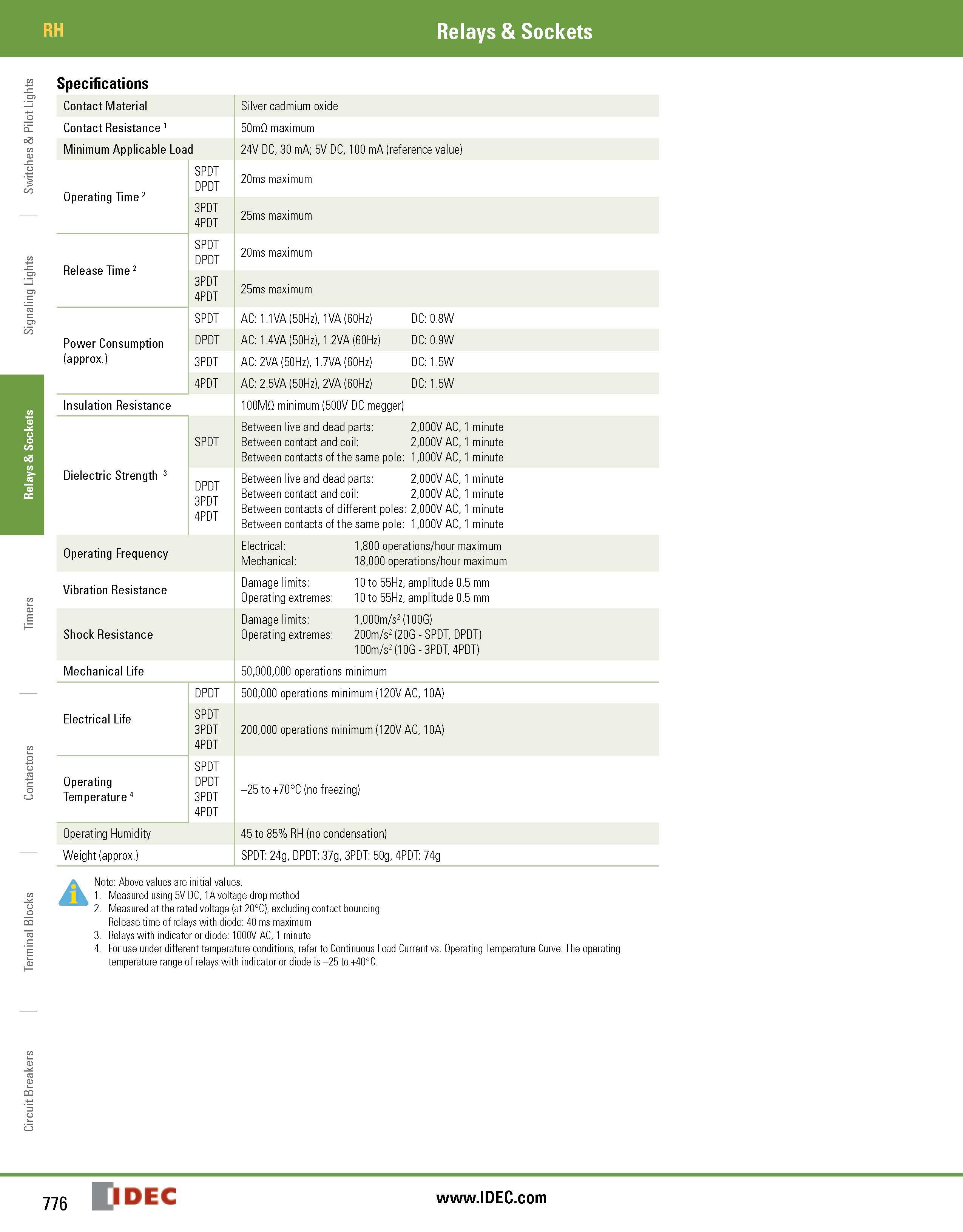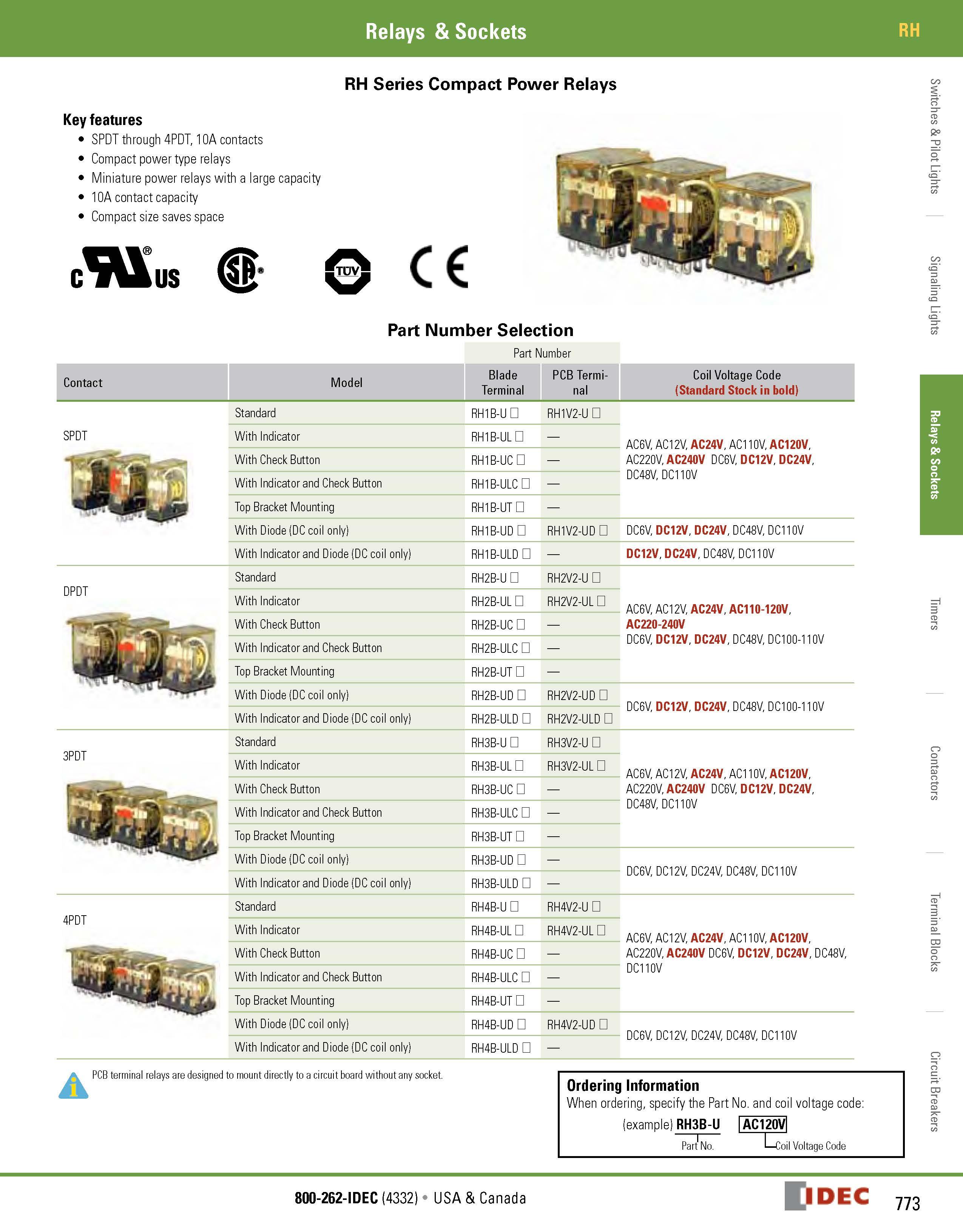 • SPDT through 4PDT, 10A contacts