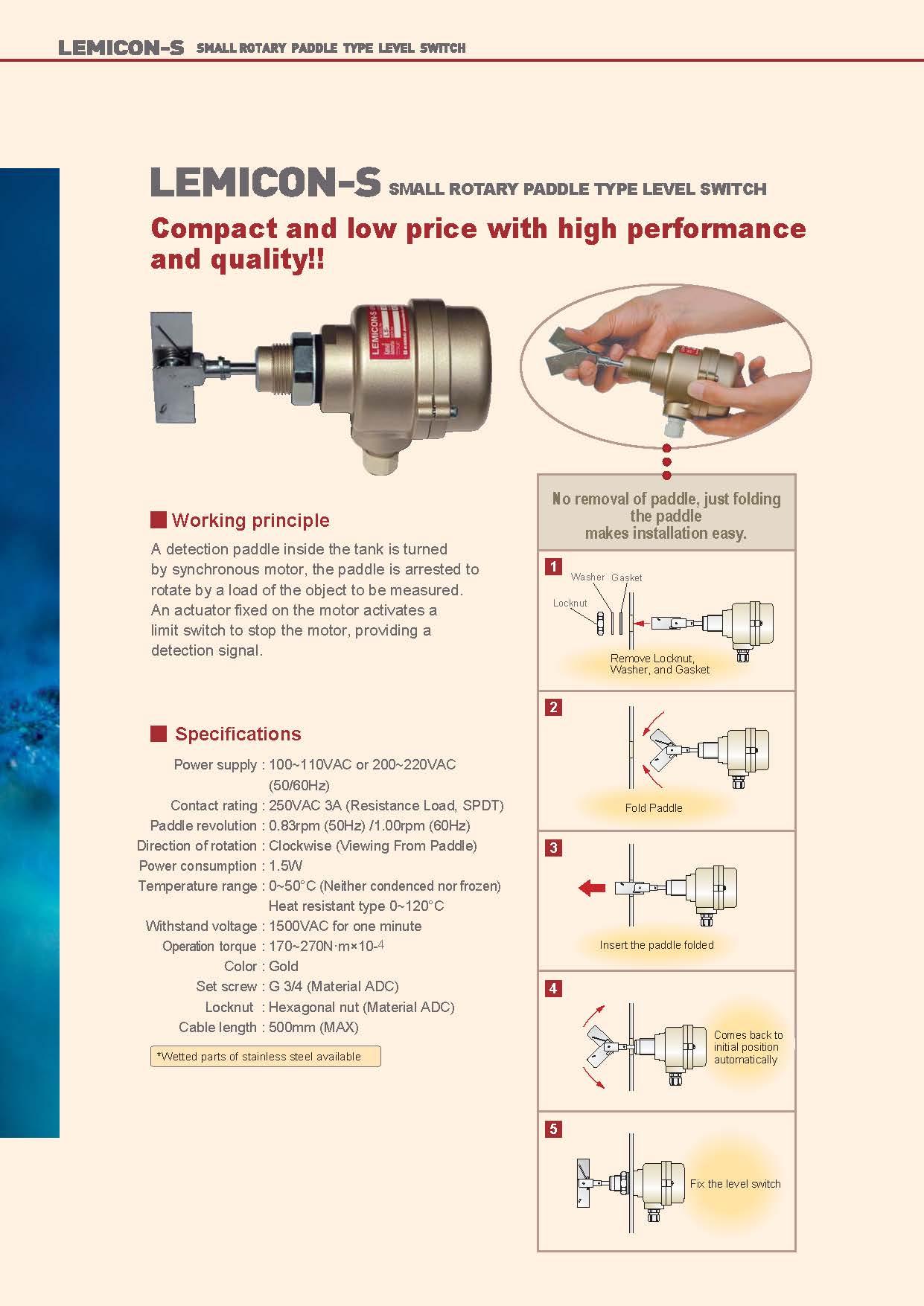 SMALL ROTARY PADDLE TYPE LEVEL SWITCH