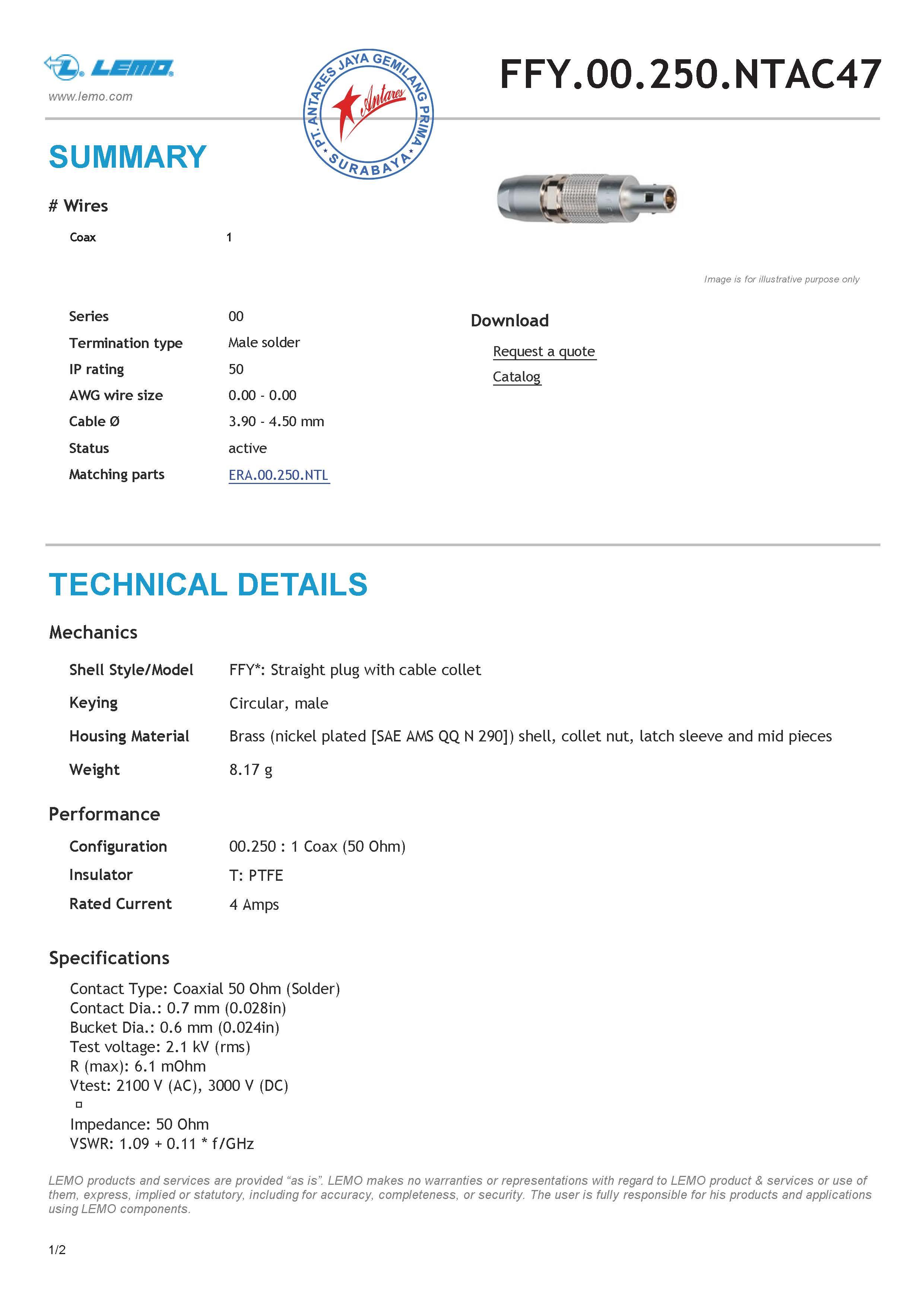 Lemo Connector Ffy00250ntac47