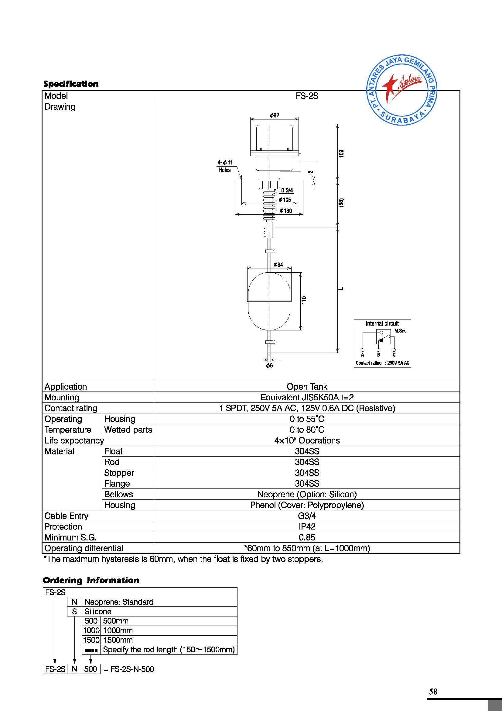 NOHKEN FLOAT SWITCH FS-2S