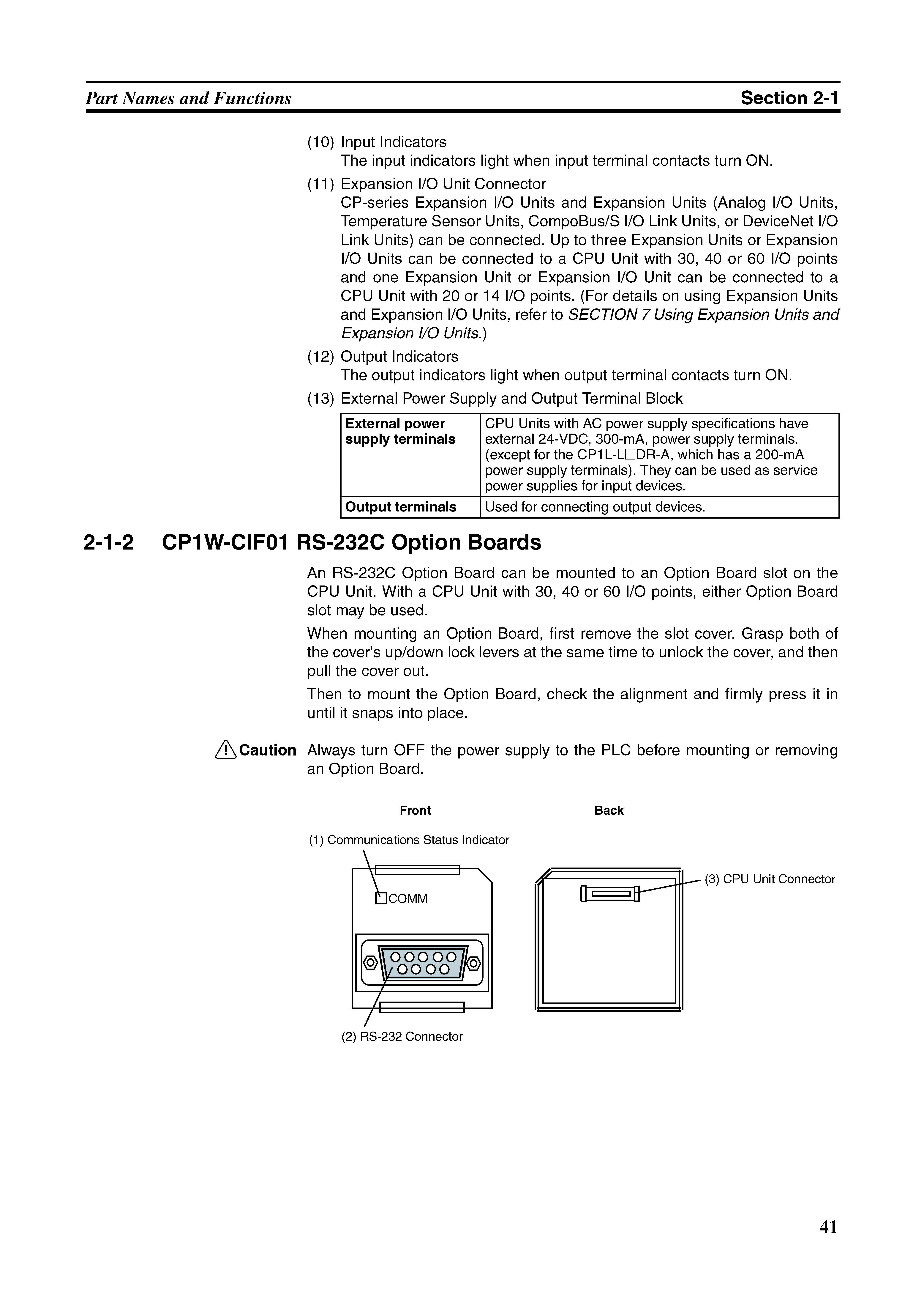An RS-232C Option Board can be mounted to an Option Board slot on the CPU Unit. With a CPU Unit with 30, 40 or 60 I/O points, either Option Board slot may be used.