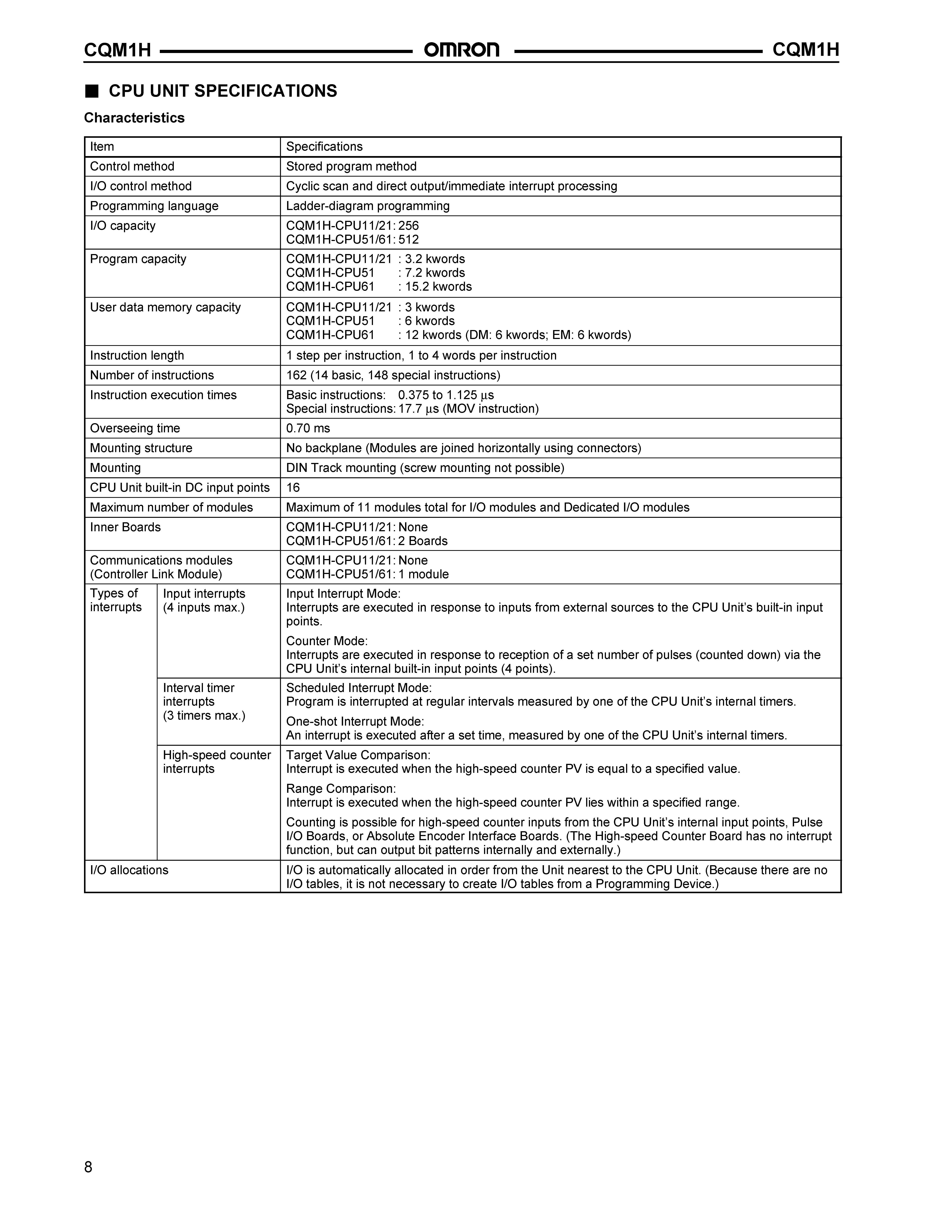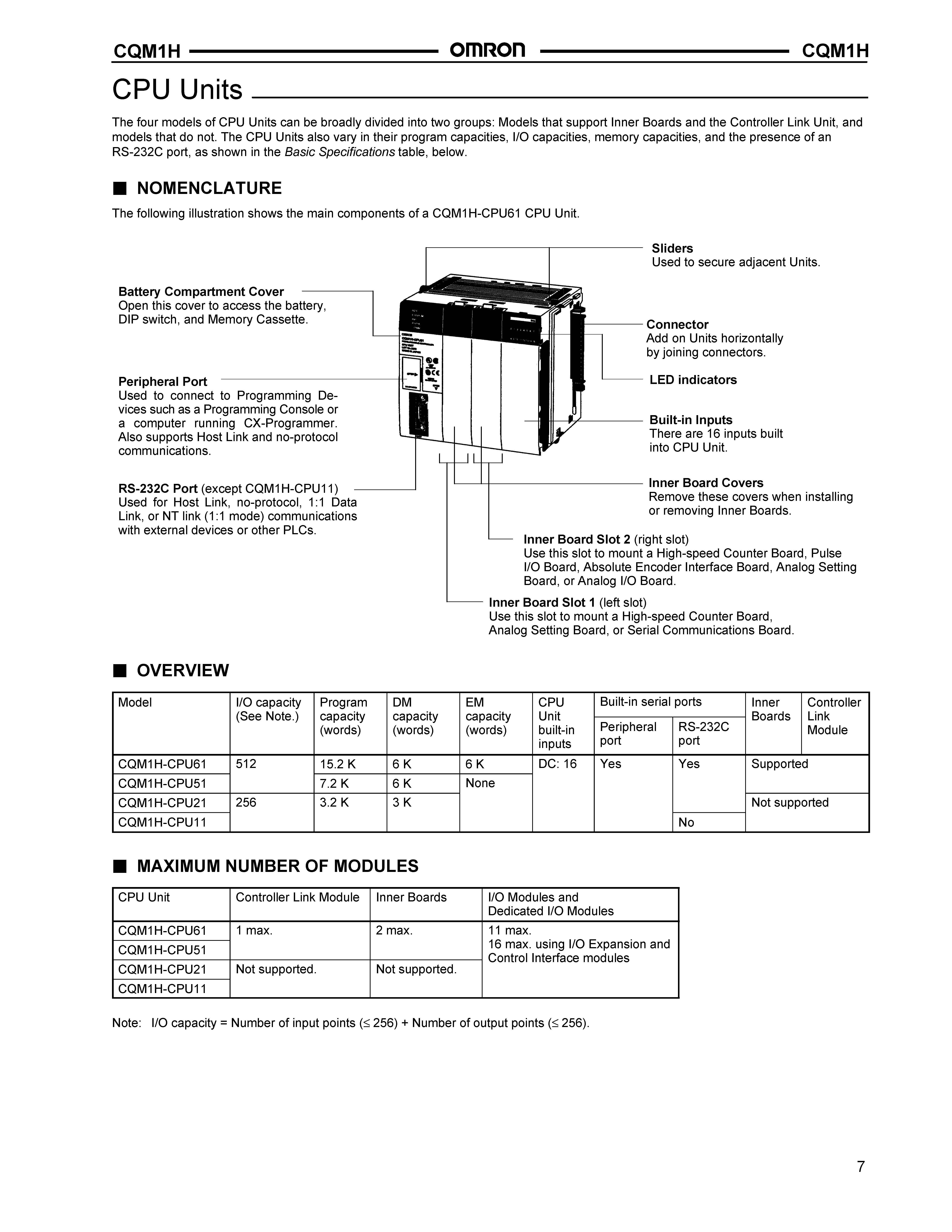 • RS-232C Port (except CQM1H-CPU11)