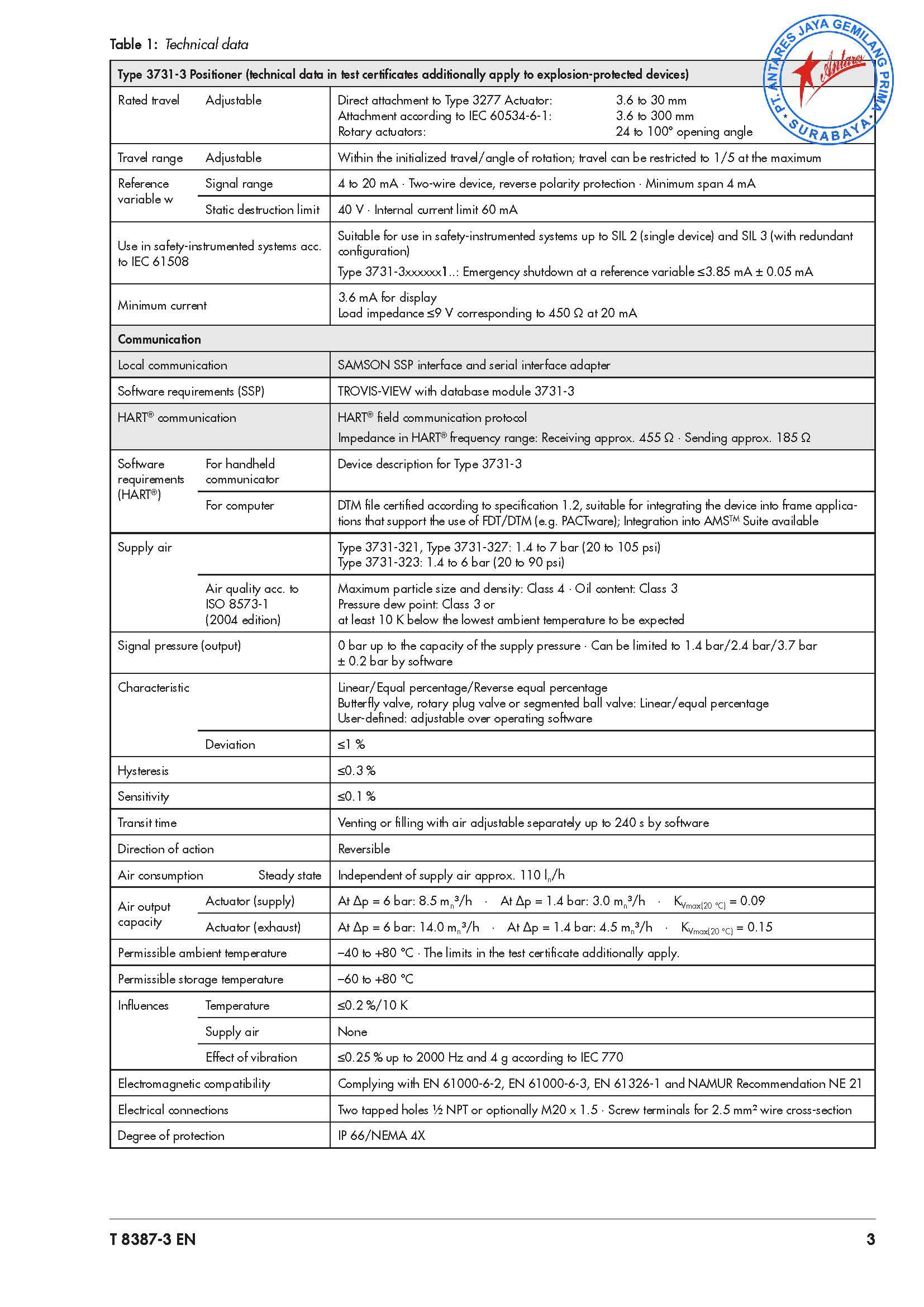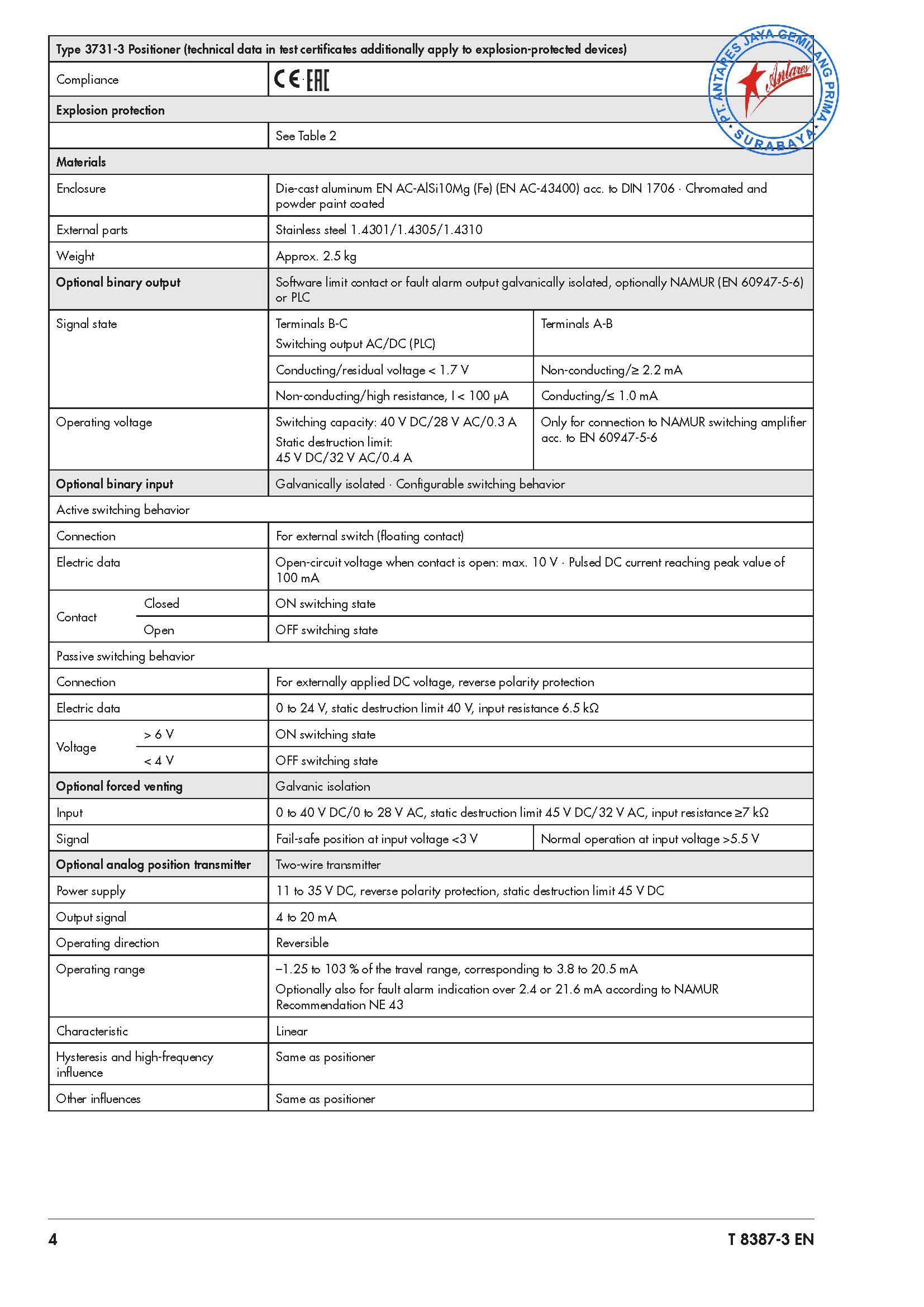 • Self-diagnostics; messages according to NAMUR Recommendation NE 107, optionally issued by an analog position transmitter