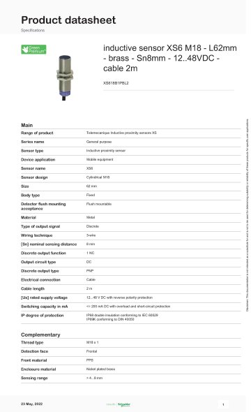 SCHNEIDER PROXIMITY SWITCH XS618B1PBL2