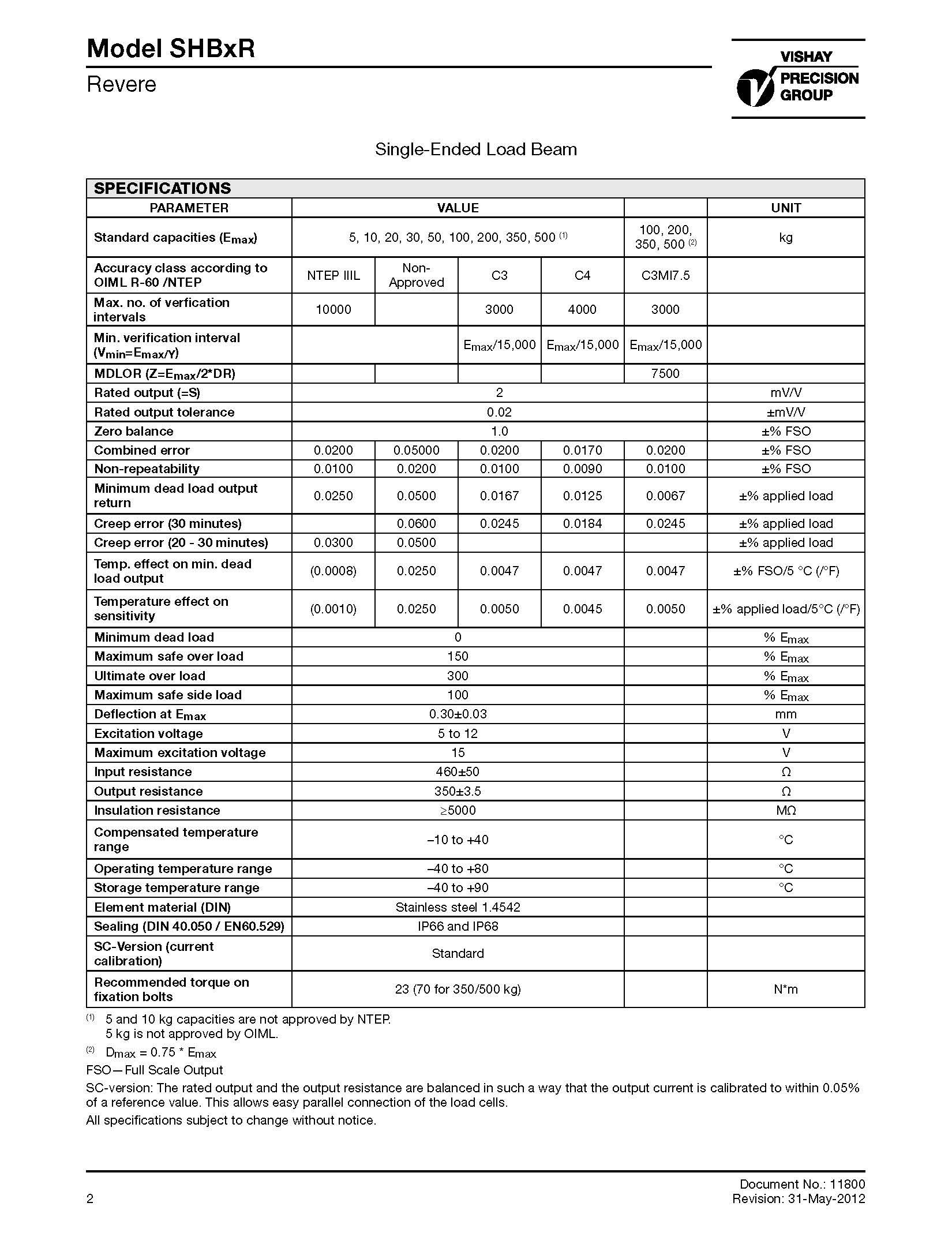• Certified to OIML R-60, 4000d and NTEP class IIIL, 10000 divisions