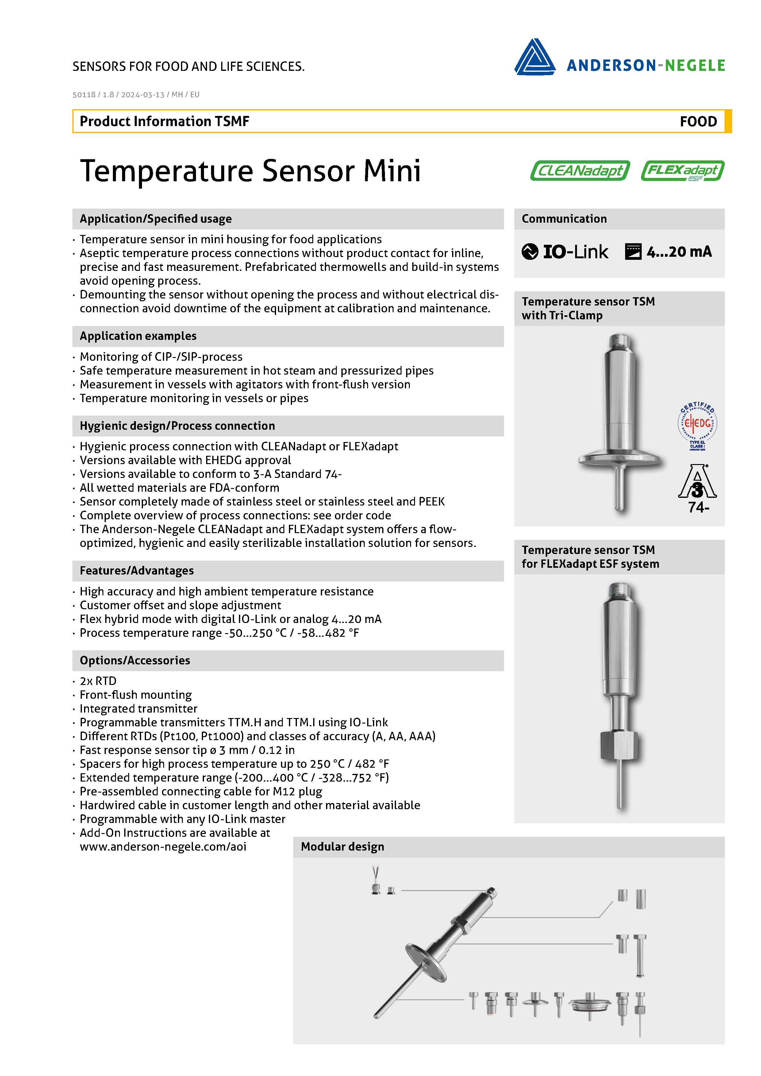 • Aseptic temperature process connections without product contact for inline, precise and fast measurement. Prefabricated thermowells and build-in systems avoid opening process