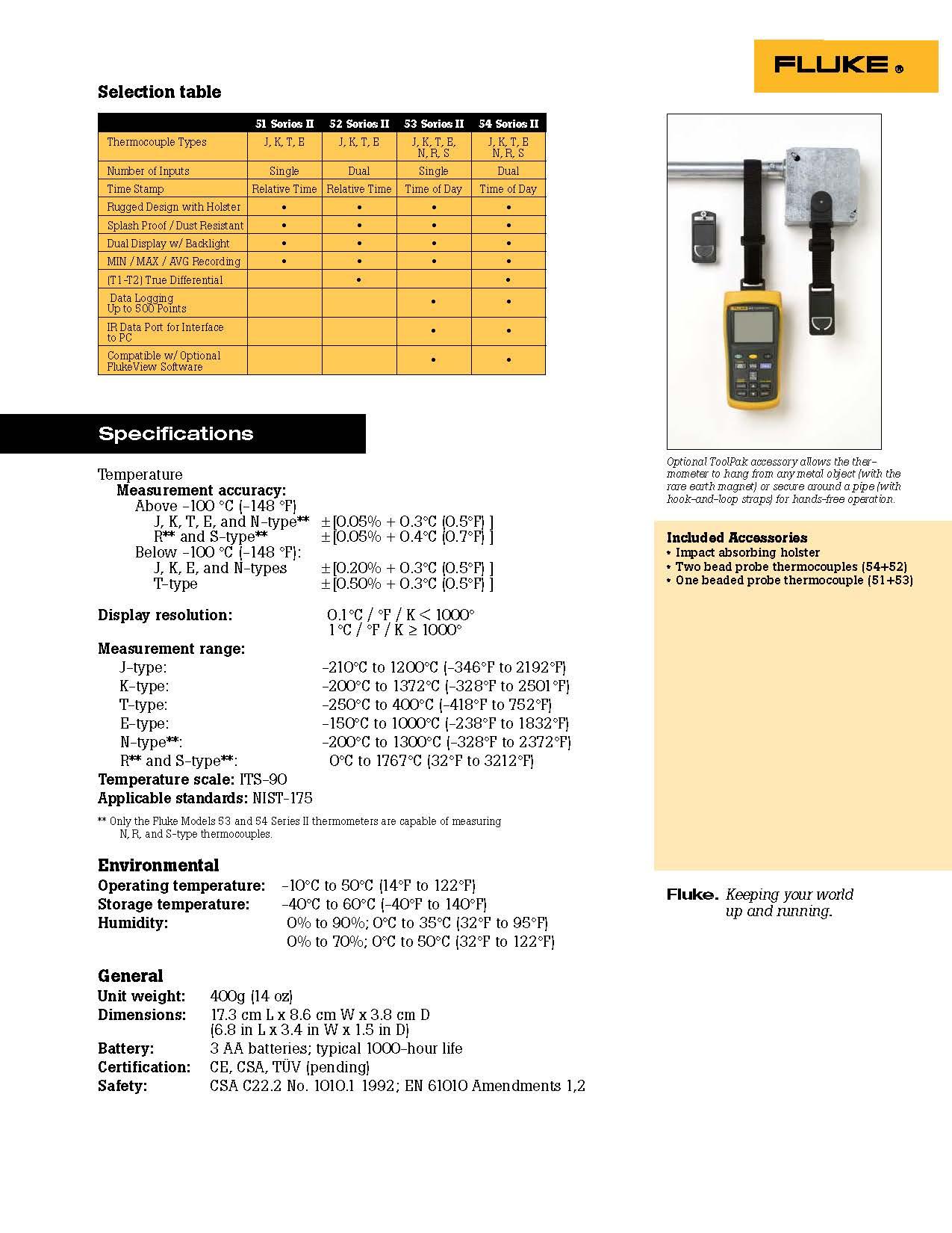 • Optional ToolPak accessory allows the thermometer to hang from any metal object