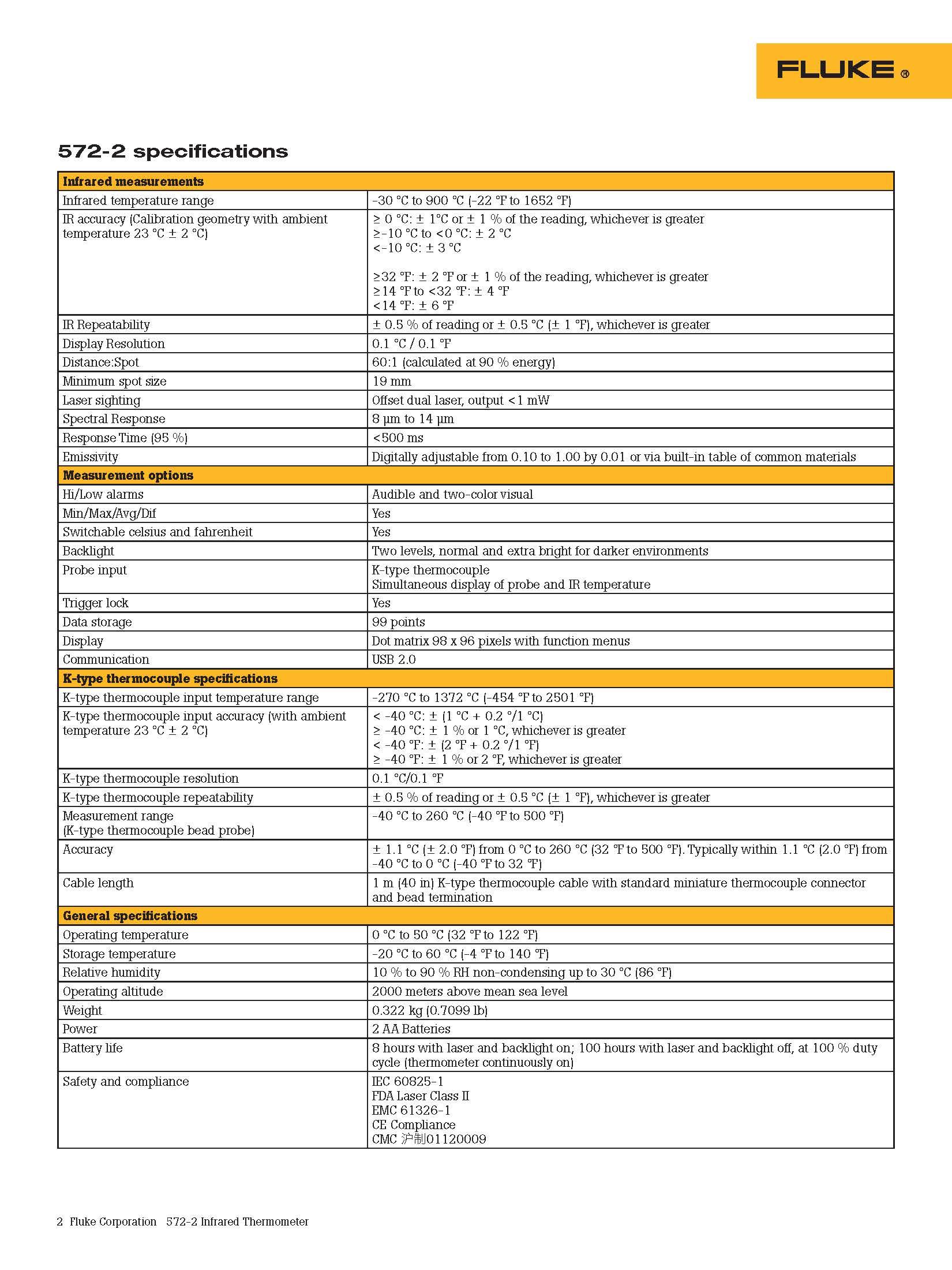 • Measure -30 °C to 900 °C (-22 °F to 1652 °F)