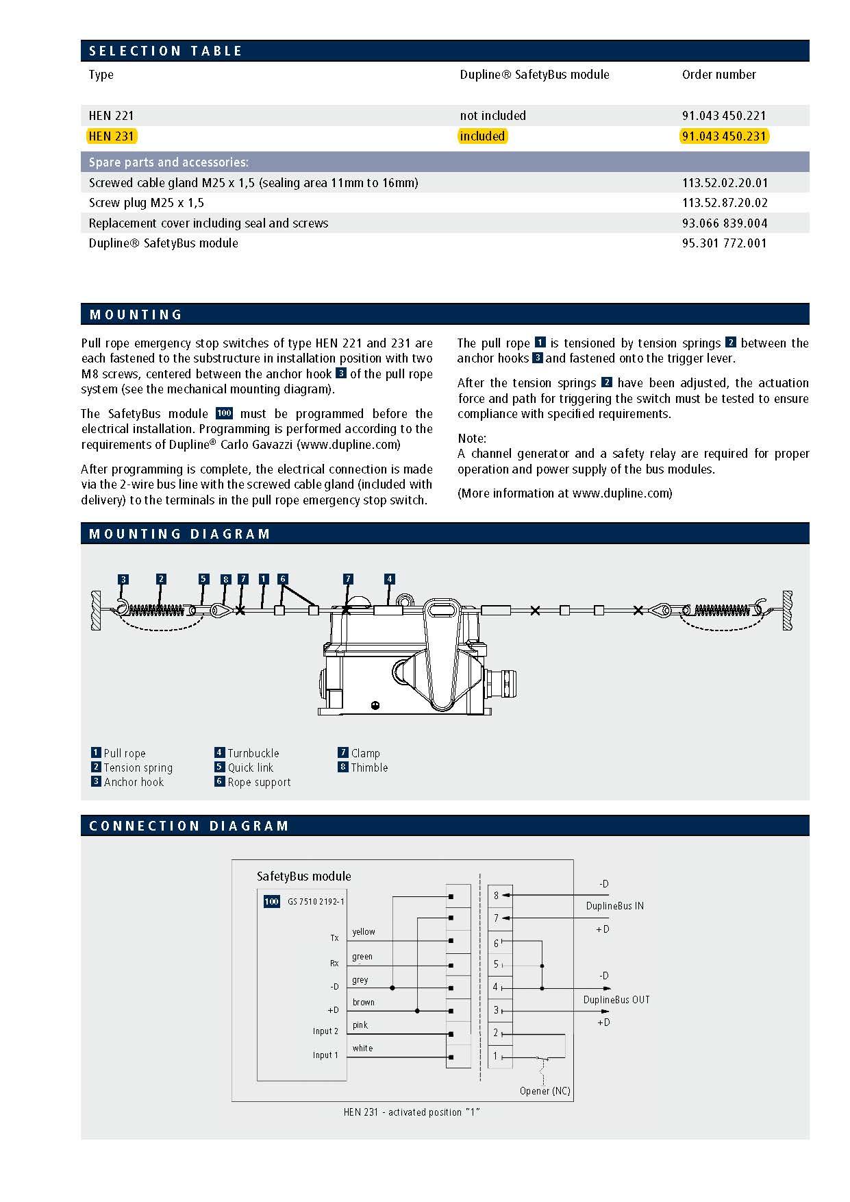 each switch. It can transferred by a SafetyBus module 100 over a 2-wire bus to a safety relay.